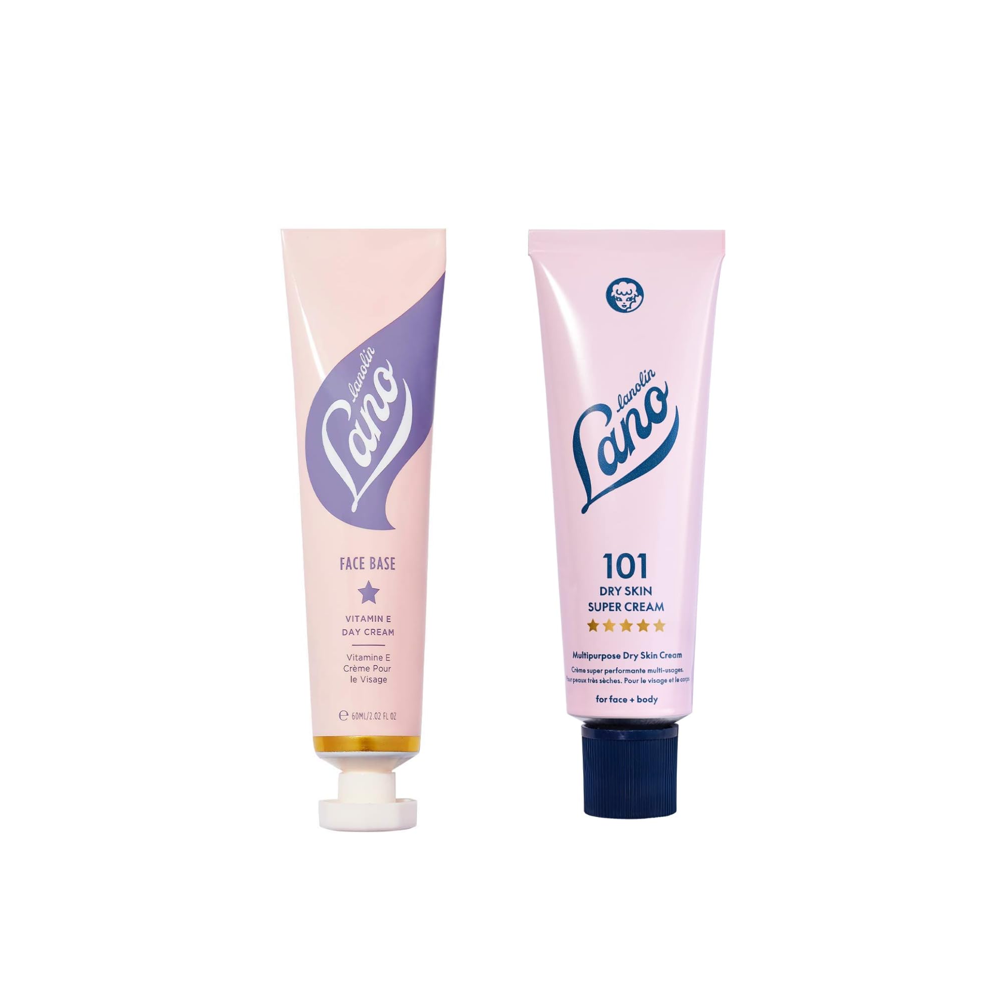 Soothe dryness from face to body with two lanolin-powered essentials. 101 Dry Skin Super Cream delivers rich, whipped moisture with triple lanolin and a unique "grip-then-absorb" feel to form a protective barrier on very dry areas. Face Base Lanolin Vitamin E Face Cream replenishes and stores moisture for a velvety barrier it glides on creamy, then sets with a gentle, grippy feel and layers under, over, or mixed with your serums. Use Super Cream anywhere—face, feet, cuticles, rough patches—then use Face Base daily to keep skin soft, happy and prepped for what comes next. Both formulas are free from petrolatum, parabens, mineral oil, sulfates and PEGs.Clean Formula – This lip treatment for dry cracked lips and more contains no petrolatum, no parabens, no artificial fragrance, no mineral oil, no sulfates, no PEG's. How to Use Together – Massage Super Cream into very dry areas so it grips, then absorbs to protect. Follow with Face Base on the face to seal softness and prep for makeup or skincare the duo keeps skin soothed, happy and comfortably hydrated. Face Base Face Cream – Lanolin with vitamin E deeply replenishes and stores moisture, leaving a soft, velvety barrier. It glides on creamy, then sets with a unique grippy feel to prep skin layer under, over, or mix with your actives and serums. 101 Dry Skin Super Cream – Triple lanolin creates a "grip-before-absorb" feel to lock in hydration as it sinks in. With shea butter, vitamin E and sweet almond oil, use on face, feet, cuticles or anywhere that needs comforting, all-over moisture. Daily Barrier Duo – Two lanolin-powered moisturizers for stubborn dryness: 101 Dry Skin Super Cream hydrates and protects all over, while Face Base with vitamin E replenishes face moisture and leaves a velvety barrier that preps skin for the next step.