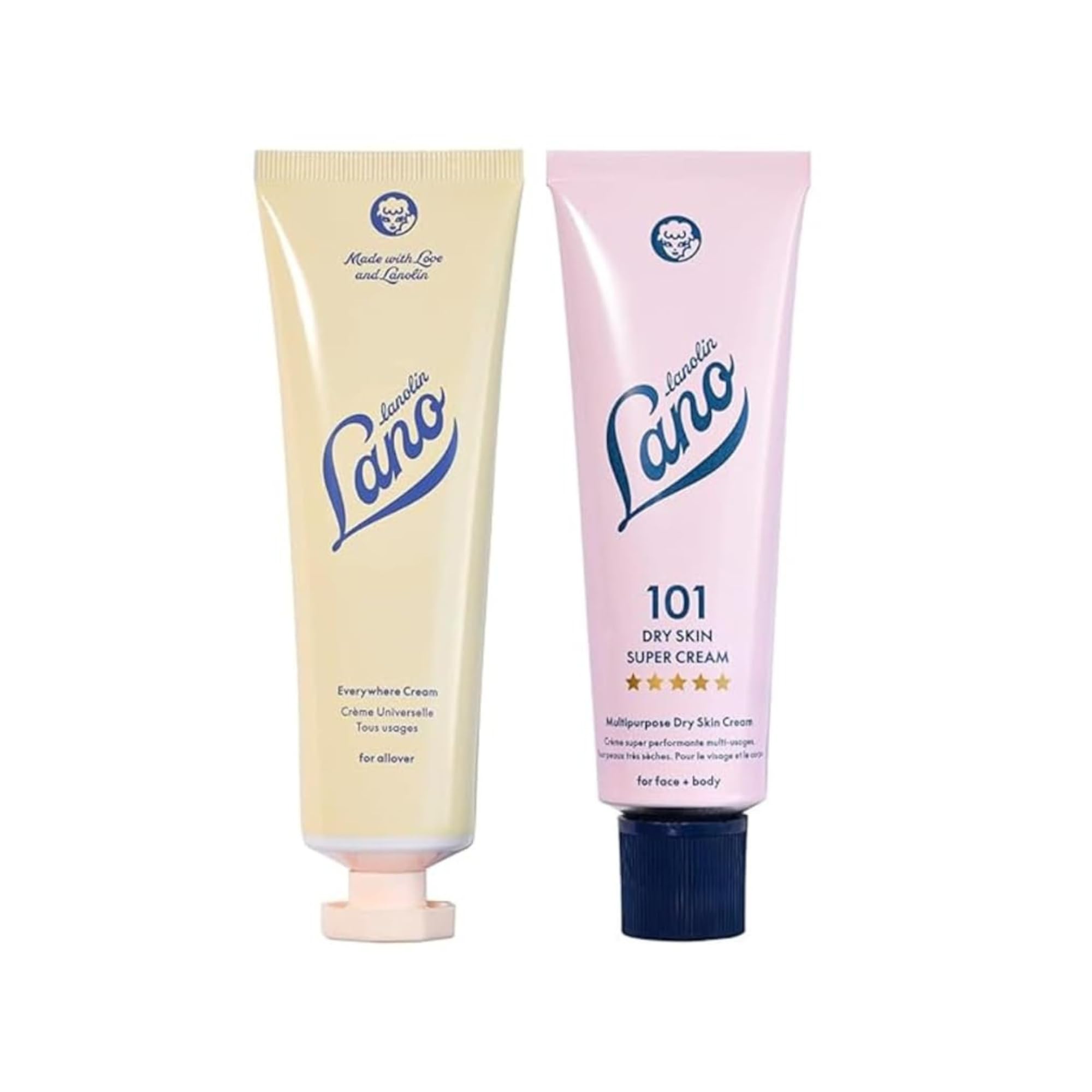 This bundle brings together two of Lanolips' hydrating heroes: Everywhere Cream and 101 Dry Skin Super Cream. Everywhere Cream (85 ml) is a versatile all-over moisturizer powered by lanolin, milk, and vitamin E. It absorbs quickly, replacing multiple facial and body products, ideal for use as a night cream, hand cream, eye cream, or baby moisturizer. 101 Dry Skin Super Cream (60 ml) features a whipped texture enriched with triple lanolin, shea butter, sweet almond oil, and vitamin E. Its unique formula grips to skin before absorbing, creating a barrier to lock in hydration for face, hands, feet, and more. Together, they cover deep moisturization and daily maintenance: use the richer 101 cream on extra dry areas, and the lighter Everywhere cream for daily face and body use. This set is perfect for dry, sensitive skin needing full-body hydration without a cluttered routine.Clean Formula – This lip treatment for dry cracked lips and more contains no petrolatum, no parabens, no artificial fragrance, no mineral oil, no sulfates, no PEG's. Synergy Use Together – Use 101 for targeted deep repair (heels, elbows, winter zones) and Everywhere for all-over daily hydration — a perfect combo for balanced skin. 101 Dry Skin Super Cream – Whipped triple-lanolin cream forms a protective grip on skin to lock moisture in and soothe dryness on face, hands, legs feet. Everywhere Cream – Multi-purpose formula combining lanolin, milk vitaminE hydrates, conditions leaves skin silky without petroleum, parabens or artificial fragrance. Hydration Duo – Two multi-use creams in one bundle — ideal for simplifying your skin regimen while ensuring deep hydration for face, body, hands, and more.
