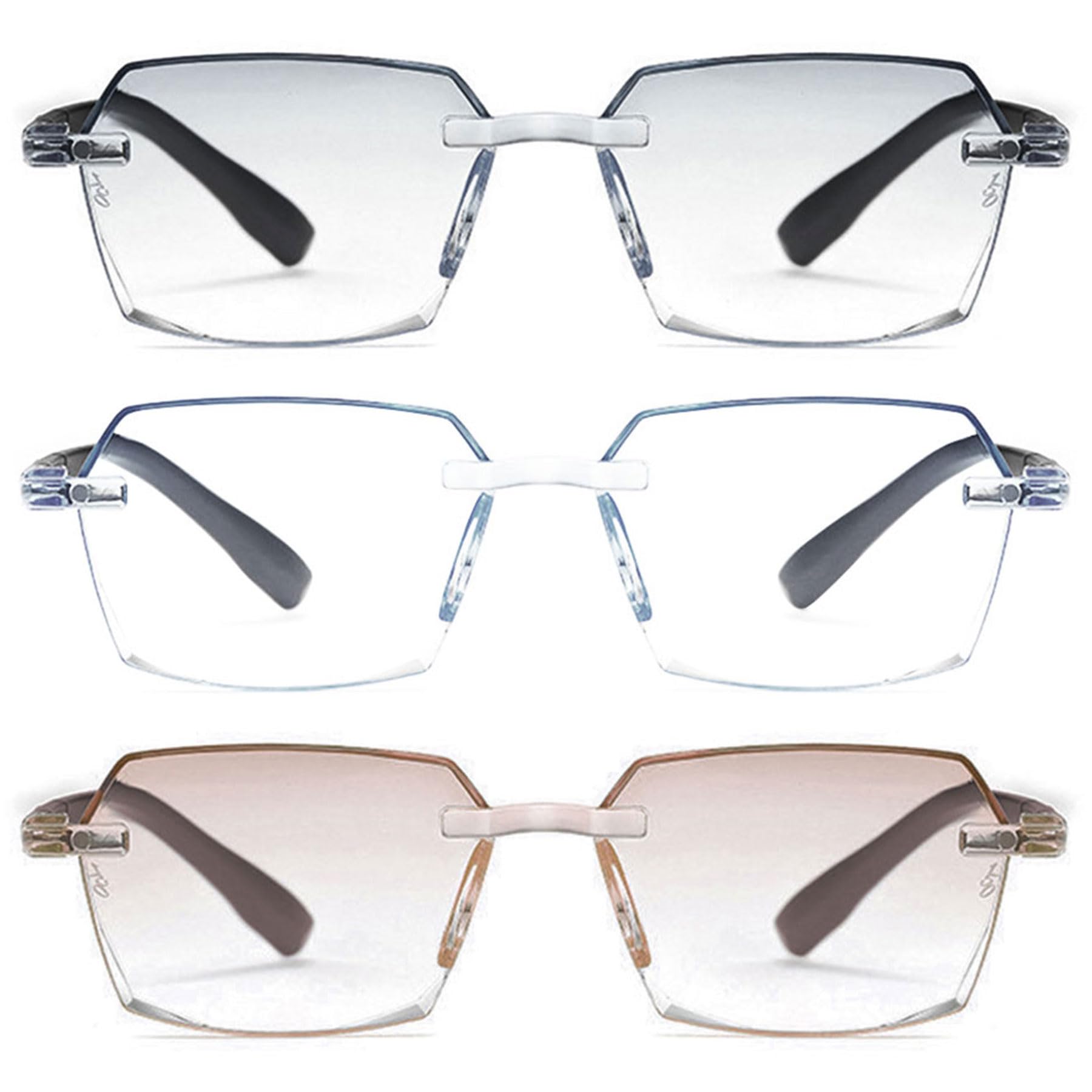 Simple exchange: If you had any question, please contact us for help.We are always ready to take care of your best shopping experience.Fashion Diamond cut reading glasses: The frameless design offers you a broader reading field without visible edges. Design with adjustable spring hinges that enable the ironing to open up 30 to close.Lanomi UV400 Protection Reflecting Reading Glasses Reduce the most harmful blue light from computer, smartphones and TV.99.9 UV400 protective coatings protect your eyes from harmful UV.Lanomi blue light filter edgeless glasses with presumption material: clear lens and tinted lens, different styles to choose from.3 colors (color gradient brown lens, color gradient gray lens, transparent lens), 7 diopters are available, selectable degrees: 1.0, 1.5, 2.5, 3.0, 3.5, 4.0.Lanomi polygon Reading glasses Frameless size: 52mm 2.05in, frame width: 136mm 5.35in, lens high: 39mm 1.54in, Brucke: 18mm 0.71in, Bugelllange: 140mm 5.51in. Frame material: High quality plastic reading glasses Blue light filter.Einfacher Austausch: HäTten Sie Irgendeine Frage , Kontaktieren Sie Uns Bitte Ohne Sorgen für Die Hilfe. Wir Sind Immer Bereit, Sich Um Ihre Beste Einkaufserfahrung Zu KüMmern. Mode Diamond Cut Lesebrille:Das rahmenlose Design bietet Ihnen ein breiteres Lesefeld ohne sichtbare Ränder.Entworfen mit verstellbaren Federscharnieren, die es den Bügeln ermöglichen, sich für ein sanfteres Schließen um 30 zu öffnen. Lanomi UV400 Schutz Lesebrille Reflektieren,Reduzieren Das Schädlichste Blaue Licht Von Computer, Smartphones und TV. 99,9 Uv400 Schutzbeschichtungen SchüTzen Ihre Augen Vor Schädlichen UV Strahlen Sie Einen Besseren Schlaf. Lanomi Blaulichtfilter Randlos Brille mit Sehstärke Material:Klar Linse und Getönte Linse,Verschiedene Stile zur Auswahl. 3 Farben(Farbverlauf braun Linse,Farbverlauf grau Linse,Transparente Linse),7 Dioptrien Sind VerfüGbar,WäHlbare Grade: 1.0, 1.5, 2.0, 2.5, 3.0, 3.5, 4.0. Lanomi Polygon Lesebrille Rahmenlos Grösse:Linsenbreite:52mm 2.05in,Rahmenbreite:136mm 5.35in,Linsenhohe:39mm 1.54in,Brucke:18mm 0.71in,Bugellange:140mm 5.51in.Gewicht Der Brillen:20g. 0.04lb.Rahmenmaterial:Hochwertiger Kunststoff Lesebrille Blaulichtfilter.Lanomi 3 Paar Lesebrille Rahmenlos Damen Herren Blaulichtfilter Diamond Cut Lesehillfe Randlos Computer Sehhilfe 3 Stück (Grau braun transparente Linse) 3.0 x