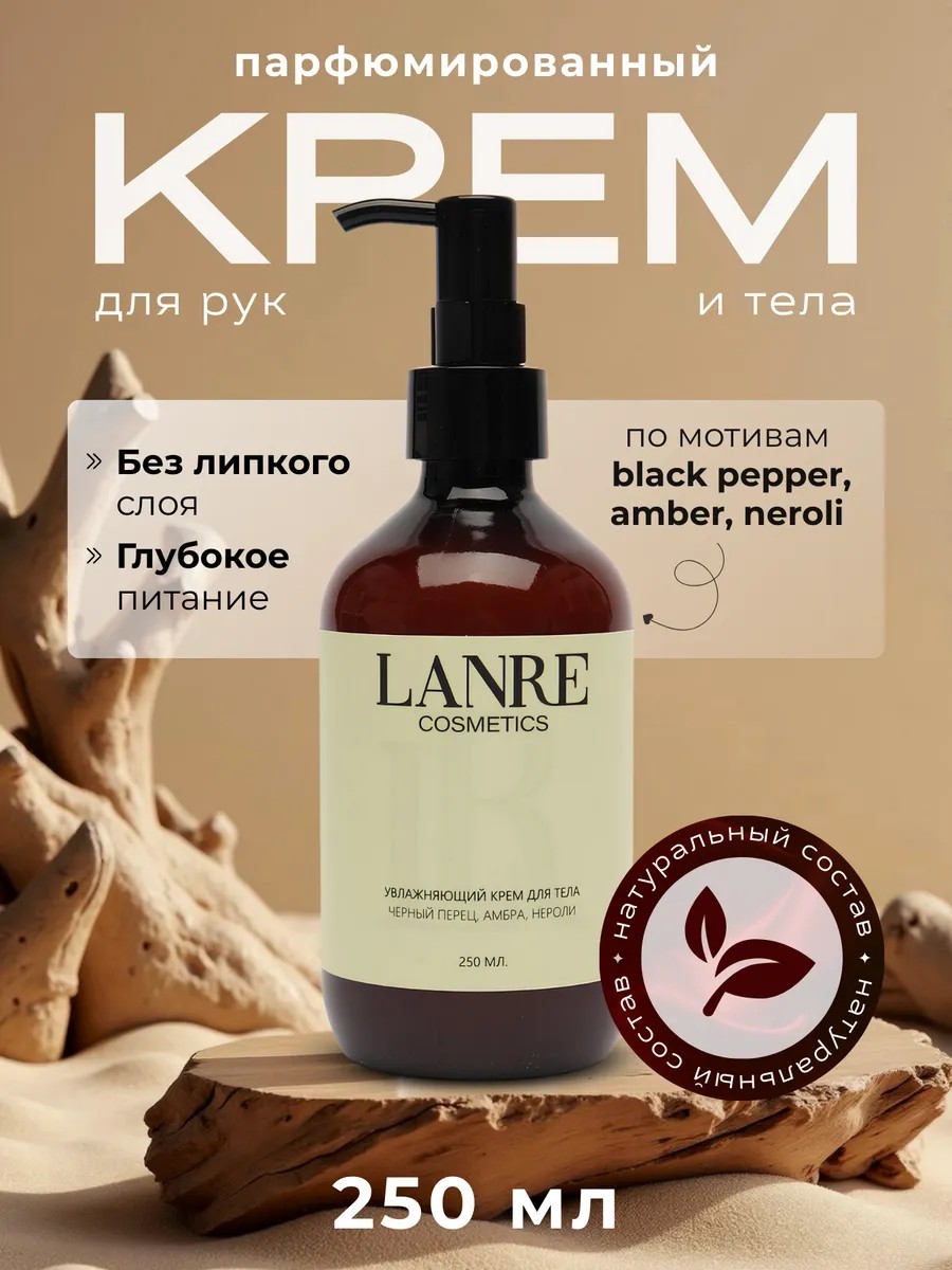 Изысканный увлажняющий крем для тела и рук с ароматом "Чёрный перец, амбра, нероли".