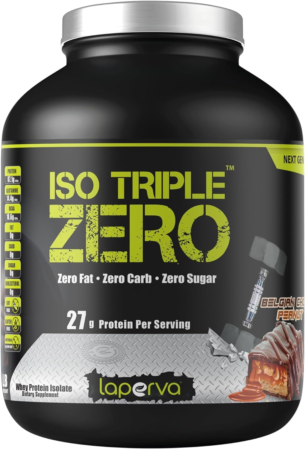 Laperva ISO Triple Zero proudly stands out for its "fat-free" properties, making it an excellent choice for those looking to control their fat intake as part of their health and fitness goals. By offering a fat-free product, ISO Triple Zero will appeal to those who prefer a lighter nutritional profile.✓ FOR ACTIVE PEOPLE - Our protein powder is ideal when you feel exhausted and need to recharge. It helps you build muscle and can be taken before or after training to promote muscle recovery. ✓ HIGH IN PROTEIN - Our whey protein powder contains 28g of protein per serving. With this protein and intense training, you can quickly develop strong, defined muscles. It is rapidly absorbed and provides the necessary amount of protein. ✓ LOW IN FAT AND SUGAR - Our whey protein isolate contains no sugar, fat, or carbohydrates, making it ideal for weight loss. Plus, it's gluten-free, soy-free, and lactose-free, so everyone can enjoy it. ✓ FAST ABSORPTION EASY TO DIGEST - Whey peptides are a highly pure, rapidly absorbed, and easily digestible form of whey protein that helps maintain and build muscle mass. ✓ DELICIOUS EASY TO MIX: No aftertaste or grainy texture. We offer nine fantastic milkshake flavors that blend well. Easy to prepare with cold water or skim milk in a glass or shaker. More flavors coming soon! ✓ Laperva ISO TRIPLE ZERO - Laperva Whey Isolate is a pure protein powder that contains both whey peptides and whey isolate. Each serving provides 28g of high-quality whey protein, 5.5g of BCAAs, 4g of glutamine, and precursors.Laperva Protéine Isolée ISO TRIPLE ZERO - 28g de Protéine par 30g - Sans Graisses, Glucides ni Sucres - Pour Perte de Poids Musculation (Choco Cacahuète Belge 1,81 Kg)DESCRIPTION DU PRODUIT Laperva ISO Triple Zero se distingue fièrement par sa propriété "sans graisses", en faisant un choix remarquable pour ceux qui souhaitent contrôler leur apport en graisses dans le cadre de leurs objectifs de santé et de fitness. En offrant un produit sans graisses, ISO Triple Zero séduira ceux qui préfèrent une composition nutritionnelle plus légère.✓ POUR LES PERSONNES ACTIVES - Notre poudre de protéine est idéale lorsque vous vous sentez épuisé et que vous avez besoin de recharger vos batteries. Elle vous aide à construire du muscle et peut être prise avant ou après l'entraînement pour favoriser la récupération musculaire. ✓ RICHE EN PROTÉINES - Notre poudre de protéine de lactosérum contient 28 g de protéines par portion. Avec cette protéine et un entraînement intensif, vous pouvez développer rapidement des muscles forts et définis. Elle est rapidement absorbée et fournit la quantité nécessaire de protéines. ✓ FAIBLE EN GRAISSES ET EN SUCRE - Notre isolat de protéine de lactosérum ne contient ni sucre, ni graisses, ni glucides, ce qui est idéal pour la perte de poids. De plus, il est sans gluten, sans soja et sans lactose, donc tout le monde peut en profiter. ✓ ABSORPTION RAPIDE FACILE À DIGÉRER - Les peptides de lactosérum sont une forme très pure, rapidement absorbée et facilement digérable de protéine de lactosérum qui aide à maintenir et développer la masse musculaire. ✓ DÉLICIEUX ET FACILE À MÉLANGER : sans arrière-goût ni texture granuleuse. Nous proposons neuf saveurs fantastiques de milkshake qui se mélangent bien. Facile à préparer avec de l'eau froide ou du lait écrémé dans un verre ou un shaker. D'autres saveurs à venir !. ✓ Laperva ISO TRIPLE ZERO - Laperva Whey Isolate est une poudre de protéine pure qui contient à la fois des peptides de lactosérum et de l'isolat de lactosérum. Chaque portion fournit 28 g de protéine de lactosérum de haute qualité, 5,5 g de BCAA, 4 g de glutamine et des précurseurs.