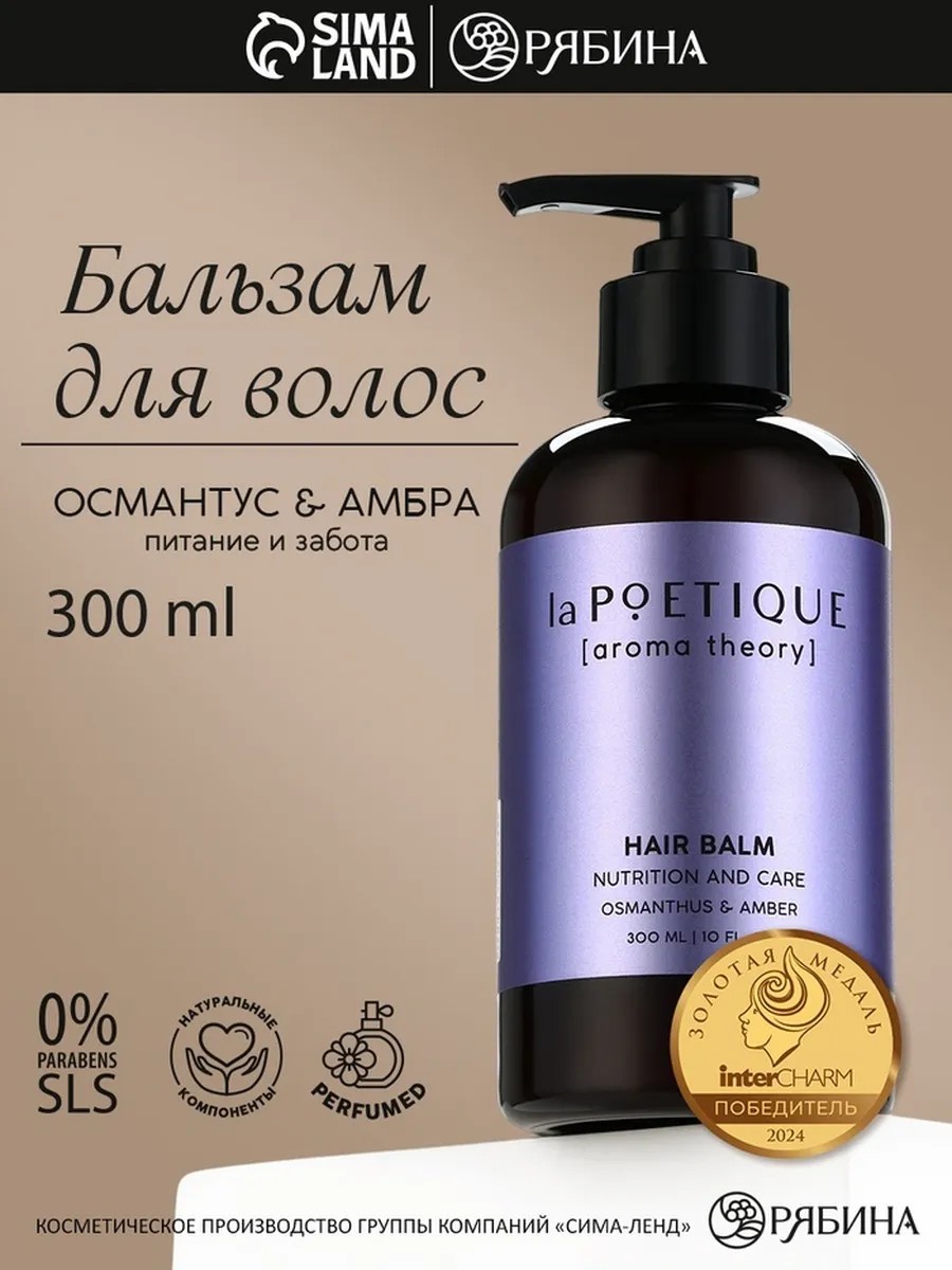 Бальзам для волос LA POETIQUE - идеальное средство для питания и восстановления повреждённых волос. Объём 300 мл позволяет надолго насладиться его действием. Аромат османтуса и амбры добавит ощущение роскоши при каждом использовании. Без упаковки, данный бальзам имеет белый цвет и предназначен специально для женщин. Универсальная тематика делает его отличным выбором для подарка, а его качественный состав обеспечивает эффективный уход. Бальзам подходит для использования при температуре от +5 до +25 градусов, что делает его безопасным в любых условиях. При регулярном применении вы заметите значительное улучшение состояния волос, их питание и восстановление. Идеально подходит для ухода за повреждёнными волосами, придавая им здоровый блеск и мягкость. Попробуйте бальзам, чтобы ощутить его полезные свойства и насладиться неповторимым запахом.