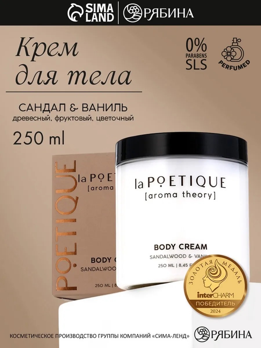 Крем для рук и тела парфюмированный laPOETIQUE объемом 250 мл - идеальный выбор для женщин, стремящихся подарить своей коже уход и заботу. Сочетание ароматов сандала и ванили создает приятную атмосферу и дарит ощущение утренней свежести. Этот крем обладает питательными и увлажняющими свойствами, что позволяет глубоко восстанавливать клетки кожи и защищать её от неблагоприятных воздействий окружающей среды. Упаковка выполнена в стильной коробке, что делает продукт подходящим для универсальной тематики праздников и мероприятий. Рекомендуется использовать в температурном диапазоне от +5 до +25 градусов. Крем подходит для ежедневного применения, обеспечивая легкое, не жирное нанесение, быстро впитывается и оставляет приятный аромат. Подарите своим рукам и телу заботу, которую они заслуживают.