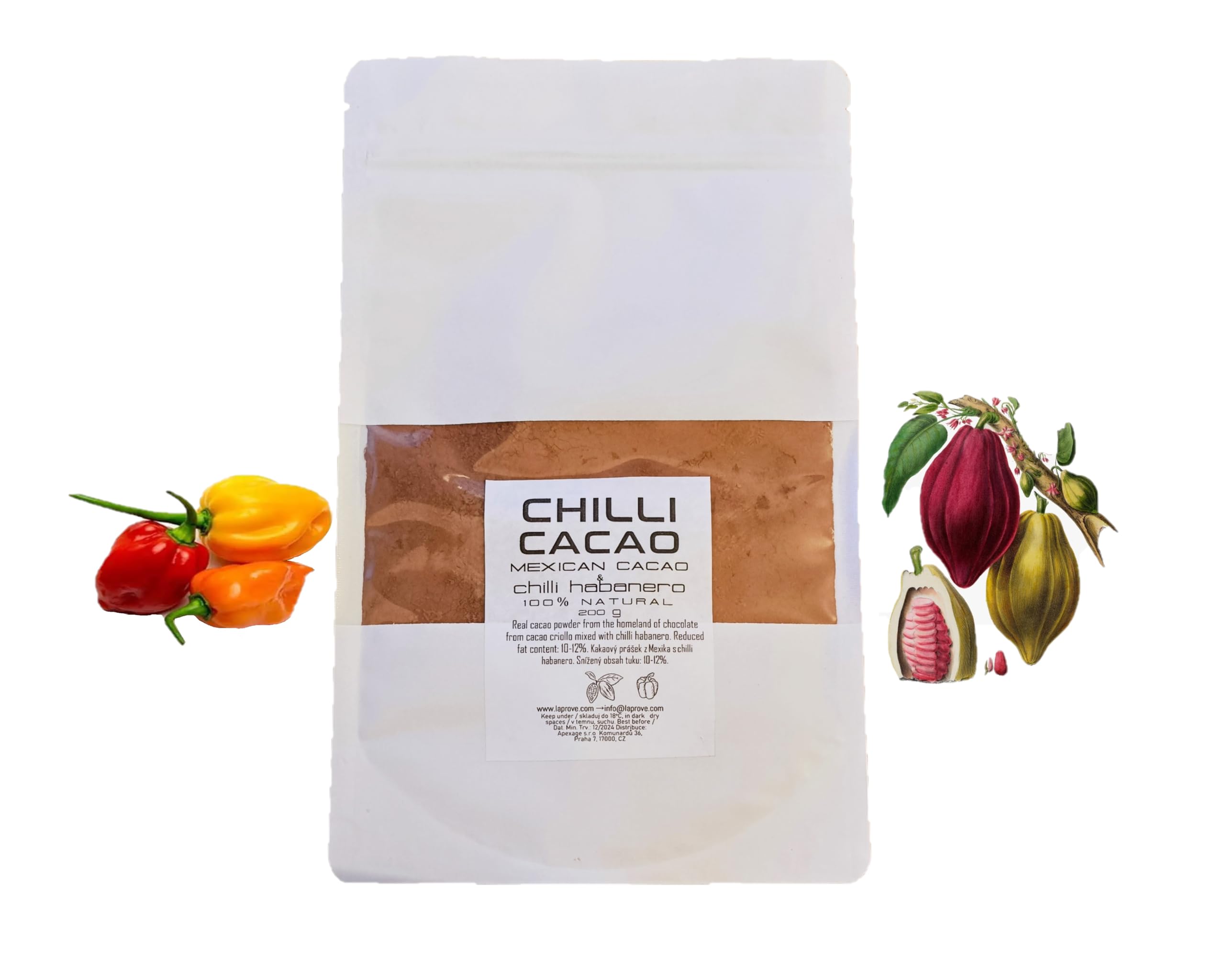 Hot cocoa. LaProve 100 Criollo Cocoa Powder with Habanero Chili 200g Cocoa powder is obtained by drying, pressing, and degreg cocoa beans. During pressing, the cocoa beans are processed to preserve vitamins, minerals, antioxidants, and especially enzymes, which are destroyed at temperatures above 40 C. At the same time, the cocoa powder thus treated retains the taste and aroma of the cocoa beans. Cocoa powder and cocoa beans contain more antioxidants and flavonoids than, for example, blueberries, red wine, black, or green tea. Cocoa powder is rich in minerals such as magnesium, sulfur, calcium, iron, zinc, copper, potassium, and manganese. The product comes from the Mexican state of Tabasco, the cocoa variety is Criollo. Unlike other similar products, the cocoa is pressed on original stone presses and contains a maximum of 12 cocoa butter.Hot cocoa. LaProve 100 Criollo cocoa powder with Habanero Chili 200g. Cacao chaud. Poudre de cacao LaProve 100 Criollo au Chili Habanero 200g La poudre de cacao est obtenue par séchage, pressage et dégraissage des fèves de cacao. Lors du pressage, les fèves de cacao sont traitées de manière à préserver les vitamines, minéraux, antioxydants et surtout enzymes qui sont détruites à des températures supérieures à 40 C. Dans le même temps, la poudre de cacao ainsi traitée conserve le goût et l'arôme des fèves de cacao. La poudre de cacao et les fèves de cacao contiennent plus d'antioxydants et de flavonoïdes que, par exemple, les myrtilles, le vin rouge, le thé noir ou vert. La poudre de cacao est riche en minéraux tels que le magnésium, le soufre, le calcium, le fer, le zinc, le cuivre, le potassium et le manganèse. Le produit provient de l'État mexicain de Tabasco, la variété de cacao est Criollo. Contrairement à d'autres produits similaires, le cacao est pressé sur des presses à pierre d'origine et contient un maximum de 12 de beurre de cacao.Cacao chaud. Poudre de cacao LaProve 100 Criollo au Chili Habanero 200g.