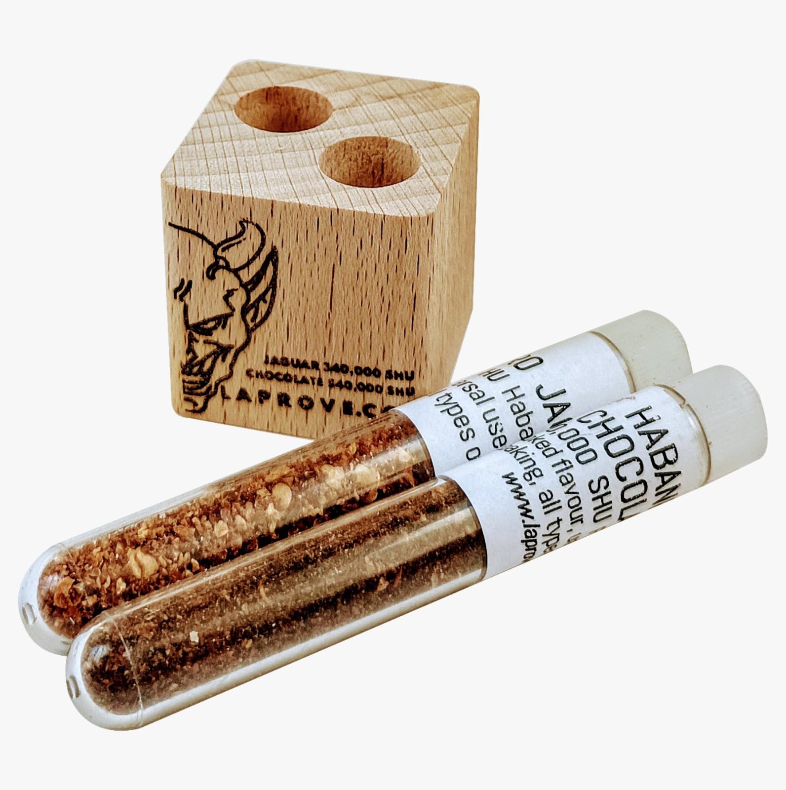 LaProve Chilli Jaguar Chilli Chocolade in a wooden cube with 2 ampoules 2g+2gx.