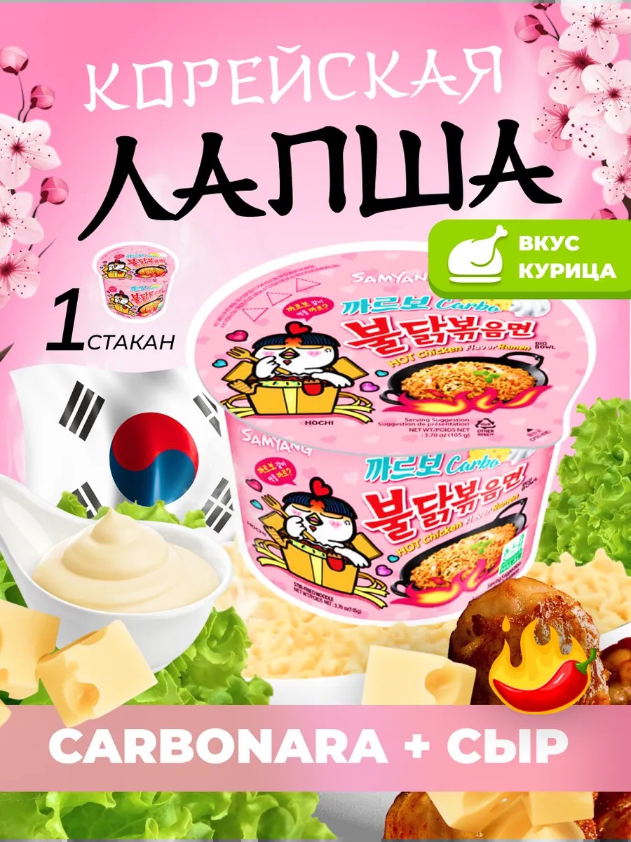 Лапша быстрого приготовления СамЯнг с куриным соусом карбонара — это не просто быстрый перекус, а настоящая кулинарная находка для любителей азиатских вкусов, обладающая уникальным сочетанием корейской и китайской кухни. Рамен имеет сходство со спагетти. Корейская еда острая и насыщена яркими вкусами.