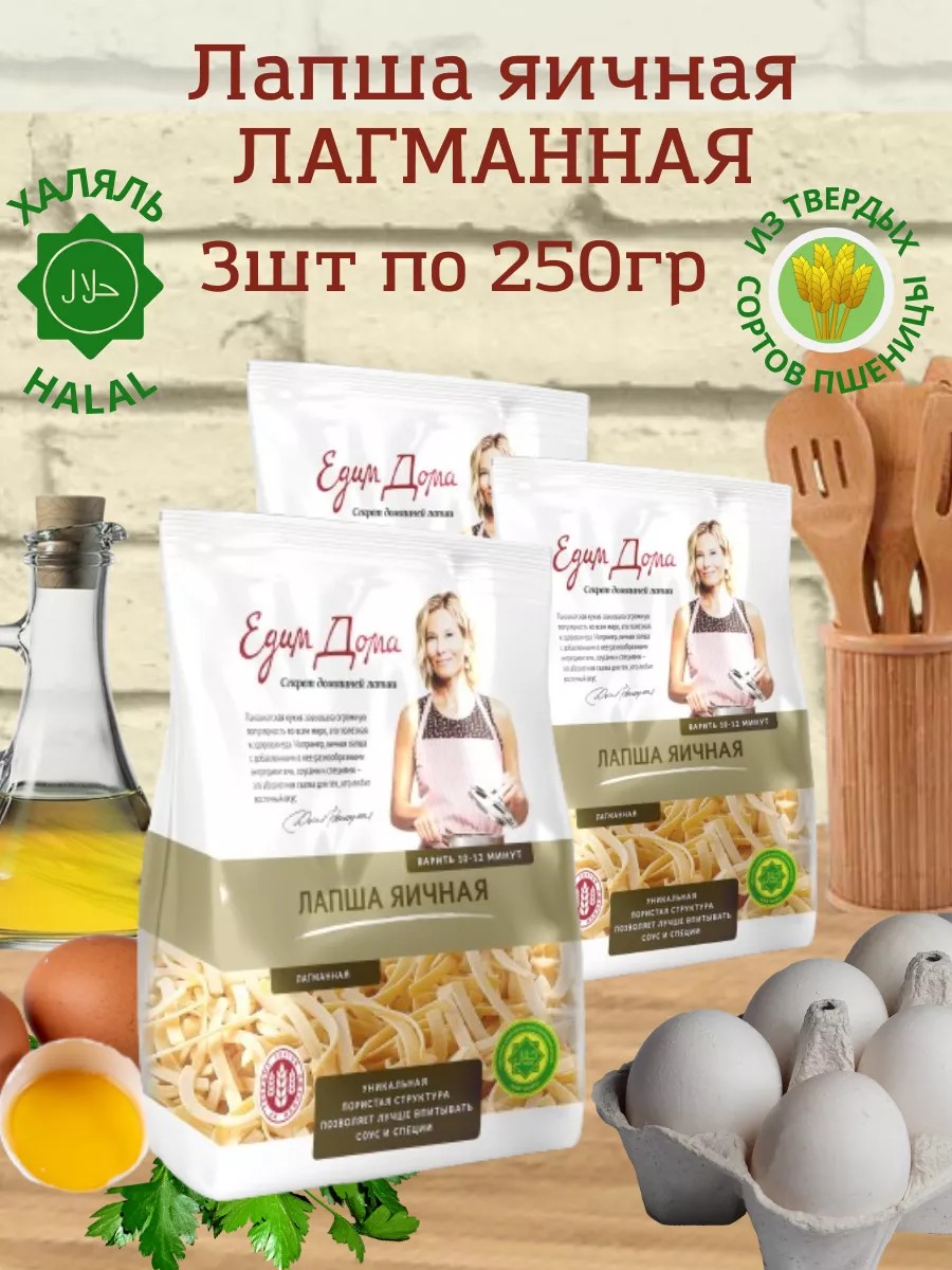 Едим Дома Лапша яичная Лагманная "Едим дома", 3 шт по 250 г