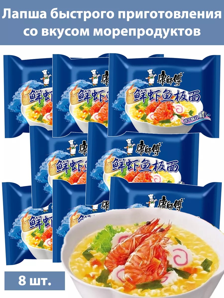 Лапша быстрого приготовления со вкусом морепродуктов 8шт
