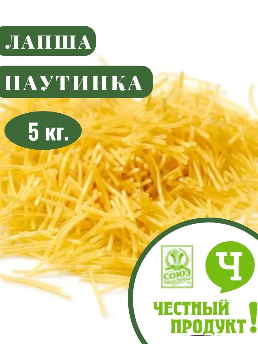 Паутинка Честный продукт сделана из муки высшего сорта из твердых сортов пшеницы. Её делают из пшеничной муки, которая придаёт лапше нежную текстуру. Пшеничный вок - отличная альтернатива для макарон и риса в качестве гарнира к вегетарианским и мясным блюдам, хорошо сочетается с птицей, с мясом и фунчезе, баранина и говядина, курица и морепродуктами, тушеными овощами и различными соусами, в упаковке 5 кг. подойдёт для большой семьи и для настоящих гурманов. Она удобна в приготовлении, имеет традиционный размер, пшеничный вкус и аромат. яичный порошок, крахмал, мука цельнозерновая, природная вода , соль. Макаронные изделия не без глютена относятся к категории плоской лапши не развариваются различаются между собой только шириной. Подходит для диетического питания постная здоровая еда. Так же рекомендуем : стеклянная, гречневые чечевичные рисовые из твердых сортов пшеницы, рожки бантики ракушки фигурные вермишель спагетти гнезда лагманная и бешбармак, паутинка лозаньи, любых блюд с мясом. Схожи с итальянскими в продаже по 3 , 1 кг. быстрого приготовления .