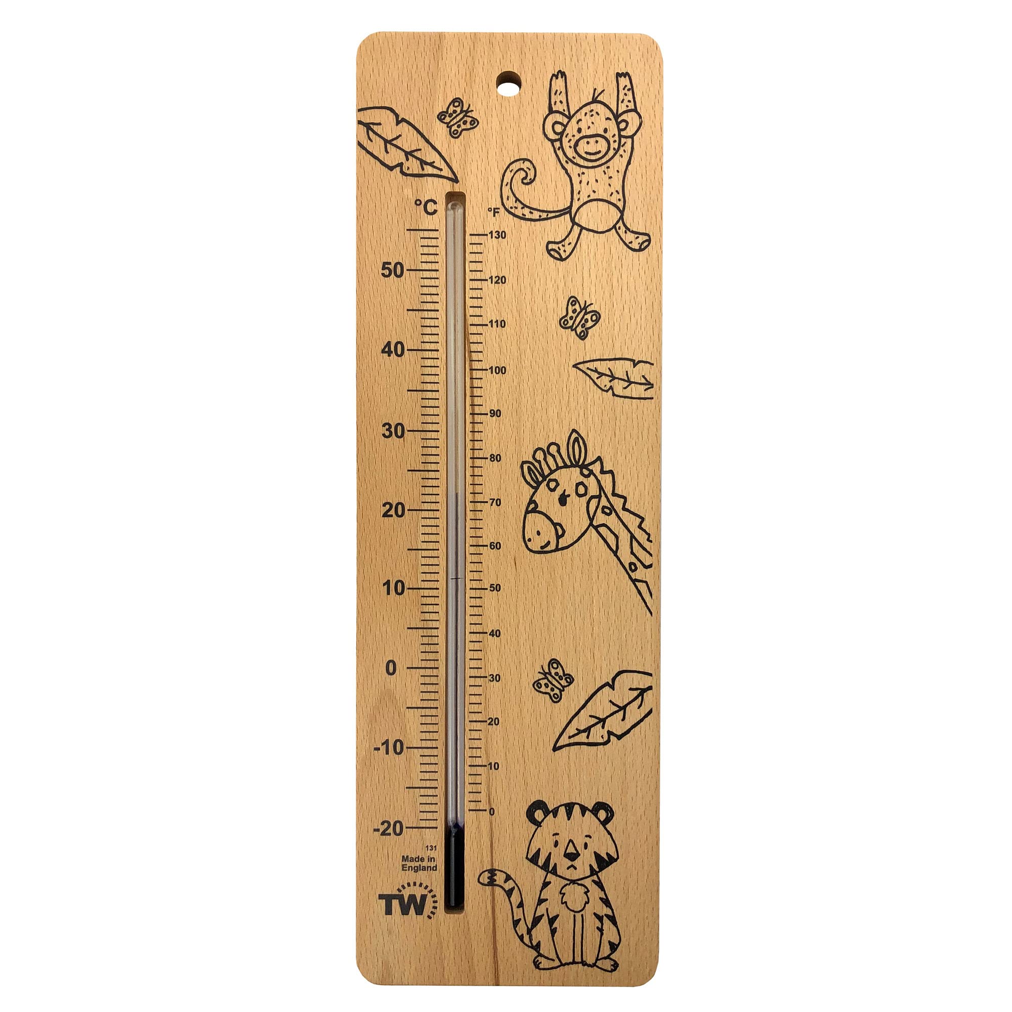 Außergewöhnlicher Kundenservice – mit einer Fülle von Erfahrung ist unser Thermometer World Team hier, um bei allen Fragen zu helfen. Qualität garantiert – unsere sorgfältig bezogene Reihe von Baby-Raumtemperatur-Thermometern wird nach den höchsten Standards hergestellt, die unsere Kunden erwarten. Fantastischer Wert – Wenn es um Kinderzimmer-Zubehör und Babyzimmer-Thermometer geht, bieten wir nur die beste Qualität und Genauigkeit und dieser Artikel ist genau das. Lustiges Holz-Design – Diese Neugeborenen Essentials haben eine schwarze Temperaturskala und Bilder von Safari-Tieren, die es sehr klar zu lesen und vor allem Spaß für die Kleinen zu betrachten. Großes Thermometer für Babyzimmer – ein beliebtes Babyzimmer-Thermometer mit coolem Safari-Design. Dieses Babyzimmer-Thermometer hat ein beeindruckendes 380 mm Design auf Buchenholz und ist einfach an einer Wand aufzuhängen.