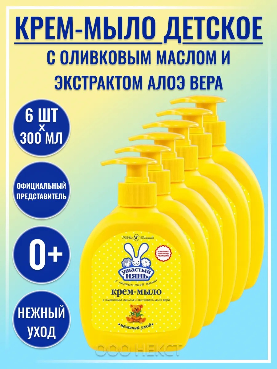Детское мыло жидкое Ушастый нянь с натуральным увлажняющим компонентом, оливковым маслом и соком алоэ - это отличный выбор для ухода за нежной кожей ребенка. Детское мыло для новорожденных бережно и мягко очищает кожу малыша, не пересушивая ее, а сок алоэ увлажняет и смягчает, устраняя раздражения. Крем-мыло деткое можно использовать для мытья рук и тела с первых дней жизни малыша. Образует пышную пену с приятным ароматом.
