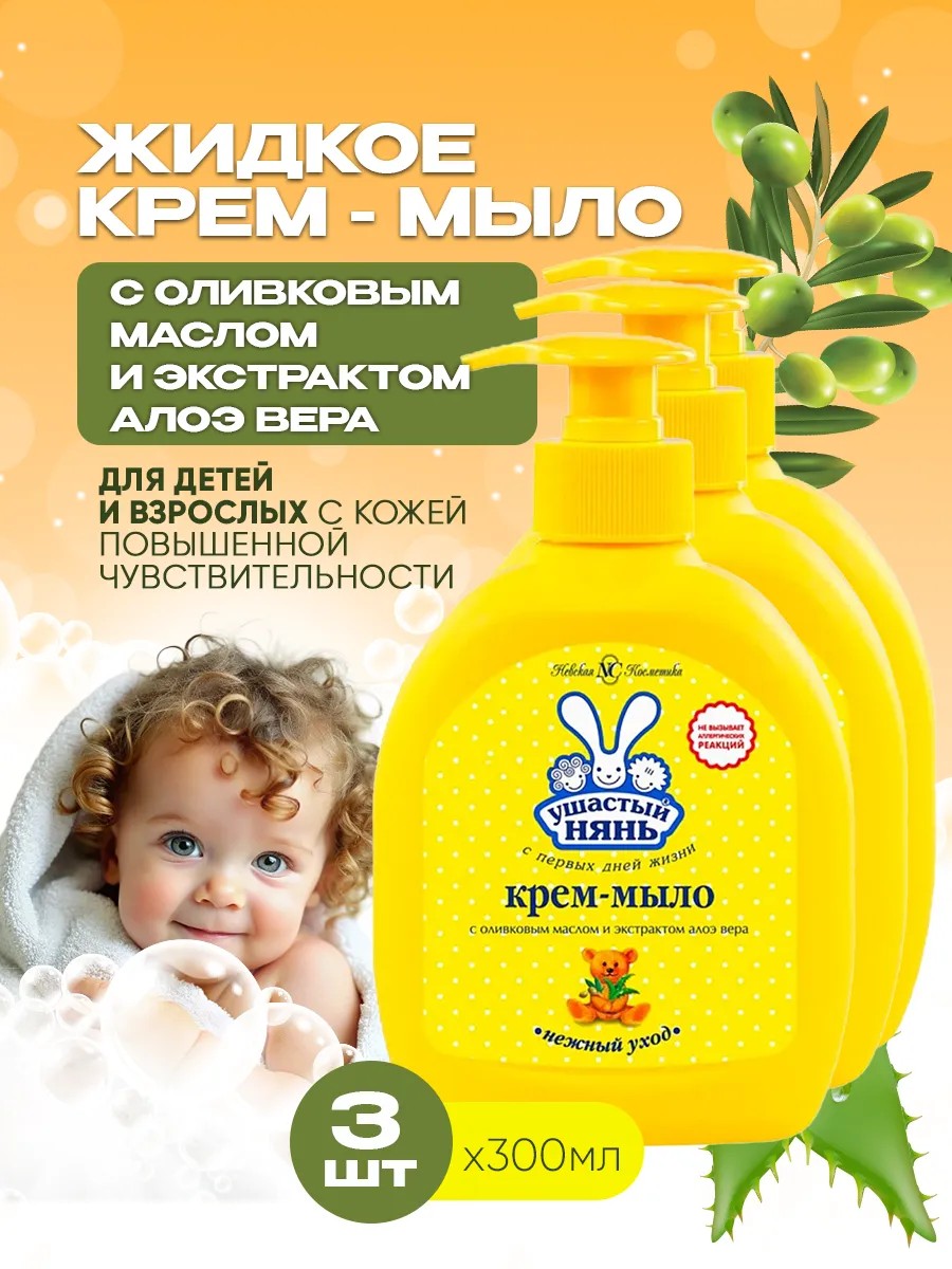 Жидкое крем-мыло детское Ушастый Нянь с оливковым маслом и экстрактом алоэ вера продаётся комплектами 3шт х 300мл - содержит природные ингредиенты в составе: сок алоэ вера и масло оливы, которые положительно влияют на состояние кожи. Сок алоэ повышает тонус и обеспечивает увлажнение, обладает антибактериальными свойствами, заживляет и снимает воспаления. Масло оливы питает и смягчает, полностью восполняет гидролипидный баланс. Крем-мыло Ушастый Нянь предназначено для деликатного ухода за кожей младенцев с рождения. Также оно подходит для взрослых с кожей повышенной чувствительности, склонной к раздражениям, высыпаниям. Мыло не вызывает аллергических реакций, что доказано клиническими испытаниями. Уровень рН средства близок к рН кожи. Крем-мыло Ушастый Нянь предназначено не только для мытья рук, также его можно использовать как гель для душа. В составе средства нет вредных компонентов, наподобие парабенов, красителей и силикона. Удобную упаковку в виде бутылки с дозатором можно без проблем хранить в вертикальном положении на полке в ванной. Состав: Aqua, Sodium Laureth Sulfate, Cocamidopropyl Betaine, Cocamide DEA, Coco-Glucoside, Glyceryl Oleate, Styrene/Acrylates Copolymer, Betaine, Aloe Barbadensis Leaf Juice, Disodium EDTA, Methylchloroisothiazolinone, Methylisothiazolinone, Parfum, Olea Europaea Fruit Oil, Sodium Chloride, Citric Acid. eo laboratorie детей детское душа коробка косметическое краситель крем лица масло младенцев натуральное новорожденных окошком оливковое парфюмерное пенка. Обратите внимание: товар продается в разных количествах, жидкое мыло детское с дозатором. Детское мыло не содержит: красителей, щелочи, силиконов, парабенов, запрещенных ингредиентов. eo laboratorie детей детское душа коробка косметическое краситель крем лица масло младенцев натуральное новорожденных окошком оливковое алоэ вера парфюмерное пенка. Лучшее детское жидкое крем-мыло!