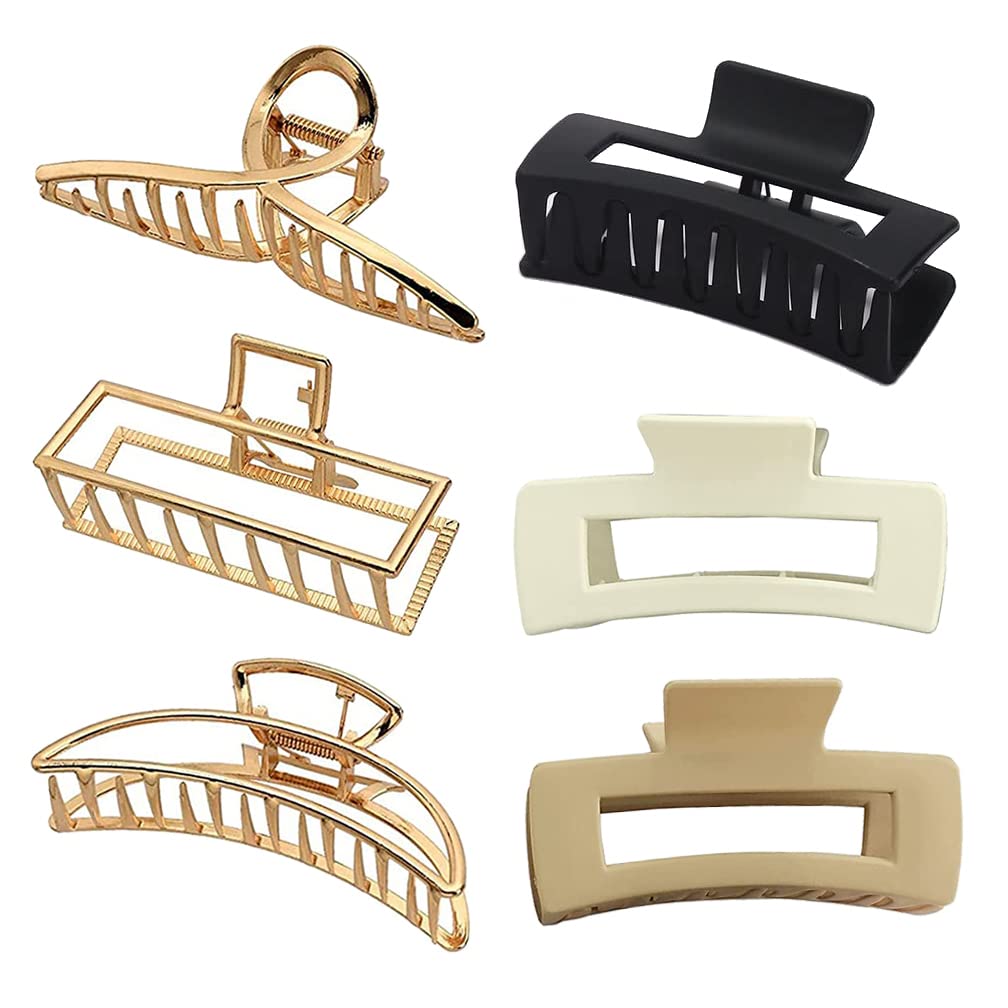 ✓ GORGEOUS GIFT FOR WOMEN: Delicate hair claw clip sets of various colors and different shapes are the perfect gifts for girls or ladies to be given on birthdays, ceremonies, anniversaries, Thanksgiving Day, Mothers' Day, Christmas, New Year, or any other special day. ✓ WIDELY APPLICATION IN LIFE: Wearing these women's hair organizer accessories, you can go to both formal and informal occasions, such as workplaces, weddings, ceremonies, parties, dances, fitness, picnics, bathrooms, barbershops, kitchens, or any other place. Such hairpins always keep you look good - clean and tidy. ✓ HIGH-QUALITY SELECTED MATERIALS: Outfitted with high quality plastic or metal materials and durable metal springs that do not rust, plus an additional layer of surface protection treatment technology to extend their service life, Dinghao large hair claws have 14 teeth clamps, as a result of which are non-slip and can hold the hair firmly. If your hair is lush and easy to cover your eye or face, then these fashionable big clips for hair will be a good choice for you. ✓ HUMANIZED DESIGN CONCEPT: Graceful appearance, rounded edges, and simple yet stylish large hair clips have been always a symbol of fashion. Dinghao hair claws are easy to use for ladies or girls in any season of the year. These hair clamps are suitable for thick hair, thin hair, long hair, short hair, curly hair, and straight hair. ✓ CAREFULLY CHOSEN PACKAGE: 6 packs of Dinghao big claw clips to meet the needs of rich life scenes. Elegant shapes and different colors including black, khaki, creamy white, and gold can match almost any of your outfits, hair colors, and hairstyles!.