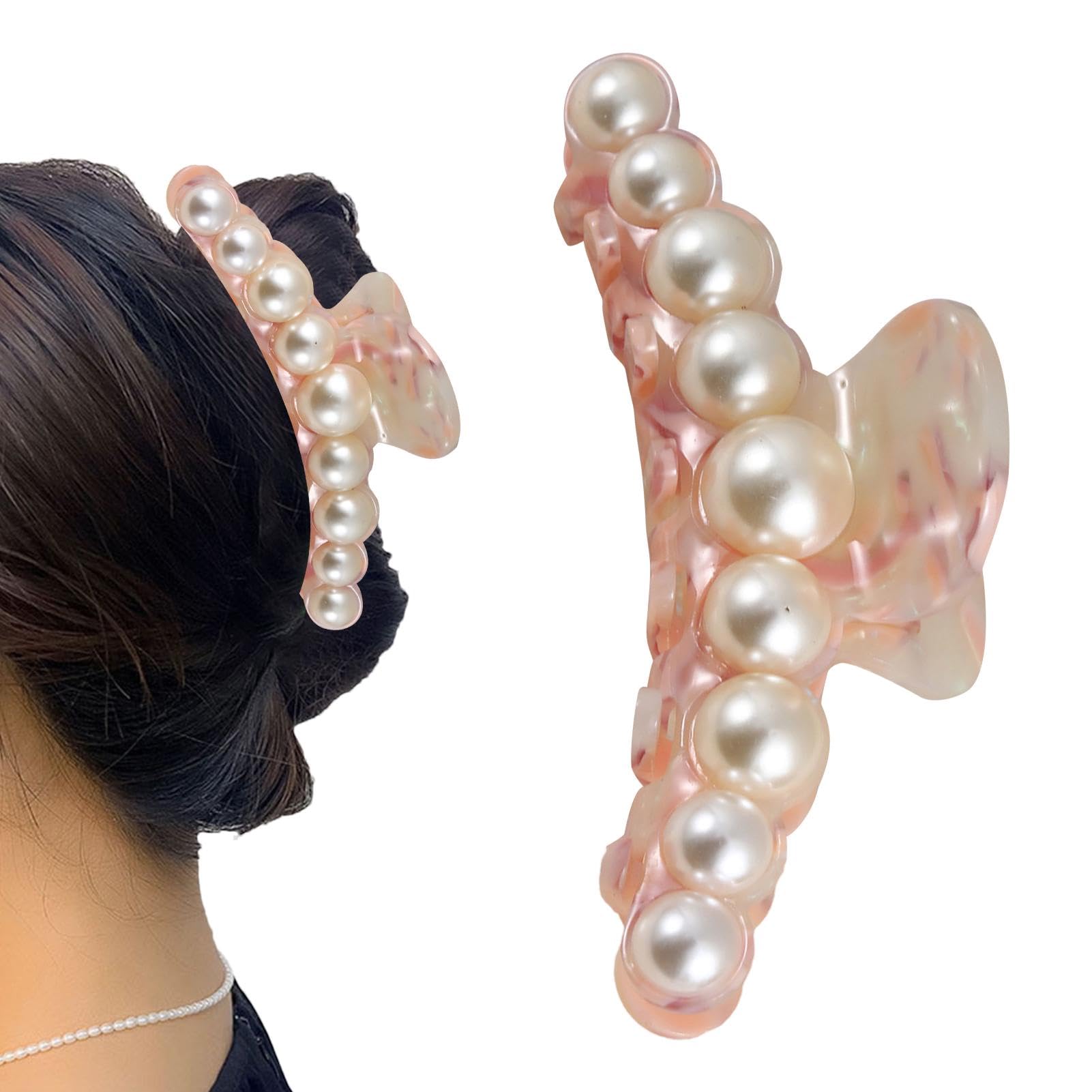 ?Best Gift: The perfect gift for women of all ages, these clips elevate any hairstyle. Ideal for weddings, birthdays, or just as sweet gesture to show your love and appreciation. ?Perfect Amplified: Tailor-made for women, this claw clip not only adds an elegant touch to your overall look but also blends fashion with function, ensuring perfect complement to any outfit. ?All-Purpose: Widely used for parties, weddings, and daily wear, these clips are the perfect accessory for women and girls looking to add touch of elegance to their hairstyles. ?Fix Hair Firmly: Complementing any hairstyle, these claw clips with pearls securely fasten your hair while adding pop of color. As the pearls attract attention effortlessly, they elevate your style and boost your confidence without any hassle. ?Beautiful Pearl Claw Clip Design: Elevate your hairstyle with sophistication and elegance with our stylish pearl claw clip. perfect addition to your daily look that will definitely catch everyone's attention.