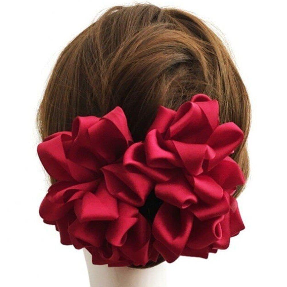 Large Silk Flower Bow Hair Claw Jaw Clips Stylish Hair Clamps Wedding Barrettes Hair Accessories for Women and Girls Wine Red