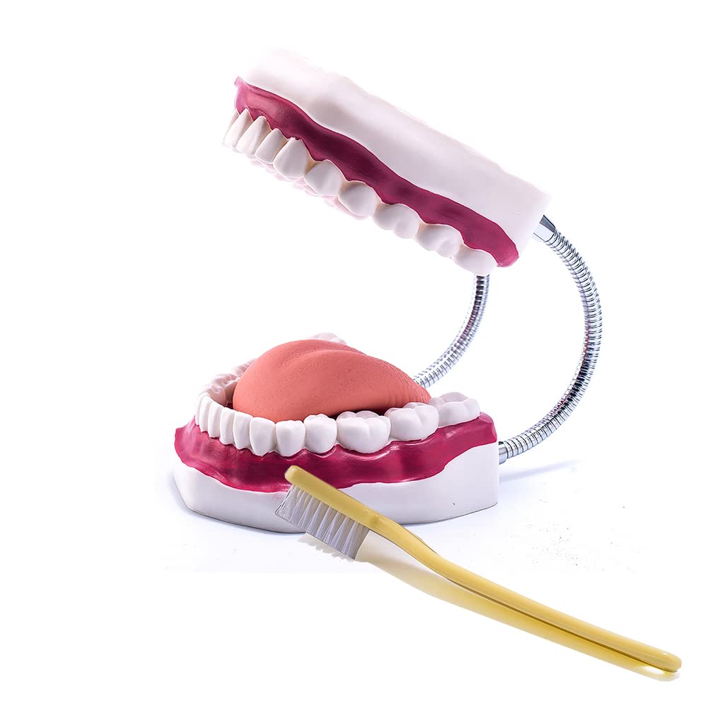 Dental care model, enlarged 6-time enlargement for children, dental hygiene teaching model (6-fold) ideal for training children through oral and dental structure, correct brush technology, and is also suitable for the use of language teachers.The simulated enlarged oral model can be opened by 120 degrees, it can be observed from different angles.6times enlarge is big enough to visually demonstrate the queues for placing the tongue and to discuss the mouth anatomy.The model contains a complete set of 32 teeth, including 8 incisors, 4 corners, 8 defolars, 8 molars and 4 wisdom teeth.High quality material: 6-fold enlarged teeth, model made of imported PVC material and metal.Environmentally friendly, non -toxic, durable. Zahnpflege-Modell, vergrößerte 6-fache Vergrößerung für Kinder, Zahnhygiene-Lehrmodell (6-fach)Ideal für das Training von Kindern über Mund- und Zahnstruktur, richtige Bürstentechnik, und ist auch für den Einsatz von Spracherziehern geeignet. Das simulierte vergrößerte orale Modell kann um 120 Grad geöffnet werden, es kann aus verschiedenen Winkeln beobachtet werden. 6times Enlarge ist groß genug, um die Queues für die Platzierung der Zunge visuell zu demonstrieren und die Mundanatomie zu besprechen. Das Modell enthält ein komplettes Set von 32 Zähnen, darunter 8 Schneidezähne, 4 Ecken, 8 Präolaren, 8 Backenzähne und 4 Weisheitszähne. Hochwertiges Material: 6-fach vergrößerte Zähne, Modell aus importiertem PVC-Material und Metall. Umweltfreundlich, ungiftig, langlebig.Große Zähne, 6-fache Vergrößerung der Zahnhygiene, Zahnmodelle, Mundpflegemodell mit abnehmbarer Zunge und Zahnbürste für den Unterricht 6 Times
