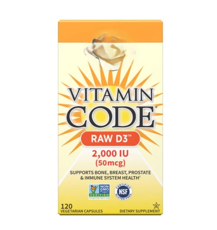 INGREDIENTS See full list on label SAFETY WARNING This product is not intended to diagnose, treat, cure, or prevent any disease. Food supplements should not be used as a substitute for a varied and balanced diet and a healthy lifestyle. Consult a physician before use if you are pregnant, nursing, taking medication or have a medical condition. Do not exceed the recommended daily dose. Keep out of the reach of children. Store in a cool, dry place, away from direct sunlight. Always read the label before use.Whether you're focused on daily support or specific health goals, this supplement range is designed to fit easily into your routine. Made with high-quality ingredients: carefully selected raw materials to support purity and potency. Free from unwanted additives - No artificial fillers, colors or preservatives included.N.Omegas Garden's Life. Vitamine Code Raw D3 Vitamine Code RAW D3, 2000 IE - 120 vcaps INGREDIËNTEN Zie de volledige lijst op het etiket VEILIGHEIDSWAARSCHUWING """"""""""""""""""""""""""""Dit product is niet bedoeld om een ziekte te diagnosticeren, behandelen, genezen of voorkomen. Voedingssupplementen mogen niet worden gebruikt als vervanging voor een gevarieerde en evenwichtige voeding en een gezonde levensstijl. Raadpleeg voor gebruik een arts als u zwanger bent, borstvoeding geeft, medicijnen gebruikt of een medische aandoening heeft. De aanbevolen dagelijkse dosis niet overschrijden. Buiten het bereik van kinderen bewaren. Bewaar op een koele, droge plaats, uit de buurt van direct zonlicht. Lees altijd het etiket voor gebruik."""""""""""""""""""""""""""""""""Of u nu gericht bent op dagelijkse ondersteuning of specifieke gezondheidsdoelen, dit supplement assortiment is ontworpen om gemakkelijk in uw routine te passen. Gemaakt met hoogwaardige ingrediënten: zorgvuldig geselecteerde grondstoffen om zuiverheid en potentie te ondersteunen. Vrij van ongewenste toevoegingen - Geen kunstmatige vulstoffen, kleurstoffen of conserveringsmiddelen inbegrepen.