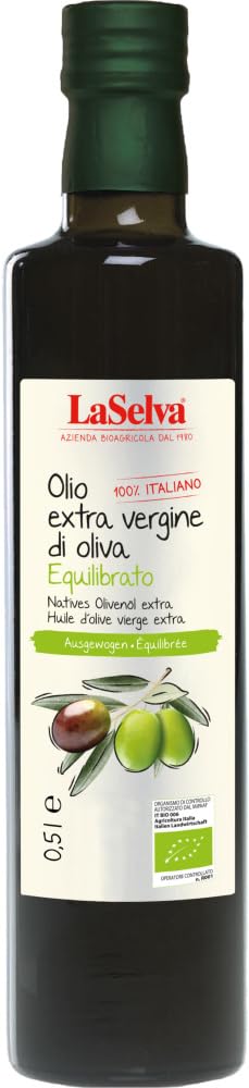 Production: In Calabria, the olives ripen for this medium-fruited extra virgin olive oil. It is obtained exclusively through mechanical processes. This premium food-grade oil, with its balanced flavor profile, is recommended for steaming, cold dishes, enhancing the taste of various dishes, and fine salad dressings. Serving suggestion: Serve this pure olive oil on toasted ciabatta bread. Ideal for toasting and salad dressings. EU Organic Certification Label INGREDIENTS Premium olive oil, directly from olives and obtained using mechanical processes. INSTRUCTIONS FOR USE Use: Ideal for salad dressings and enhancing dishes. Storage: Store in a cool, dry place. Note: Contains no allergenic ingredients. SAFETY WARNING Allergy Information: Not used in production: eggs, milk, tree nuts, peanuts, sesame, gluten, soy, celery, mustard, lupin, molluscs See moreLa Selva Huile d'olive vierge bio extra équilibrée - Fabriquée en Italie (2 x 0,50 l)DESCRIPTION DU PRODUIT DESCRIPTION DU PRODUIT Transformation : en Calabre, les olives mûrissent pour cette Olio extra vergine di oliva à fruits moyens. Elle est obtenue exclusivement par des procédés mécaniques. La nourriture de qualité supérieure, avec sa note équilibrée, est recommandée pour la cuisson à la vapeur, la cuisine froide, le goût des plats et les vinaigrettes fines. Astuce de dégustation : servez l'huile d'olive pure sur du ciabatta grillé. Traitement préparation : idéal sur du pain grillé et pour les vinaigrettes. Conseil de dégustation : servez l'huile d'olive pure sur du ciabatta grillé. Certification label biologique UE INGRÉDIENTS Huile d'olive de première qualité, directement à partir d'olive et obtenue avec des procédés mécaniques. MODE D'EMPLOI Utilisation : idéal pour les vinaigrettes et pour affiner les plats. Conservation : conserver dans un endroit frais et sec. Remarque : ne contient pas d'ingrédients allergènes. AVERTISSEMENT DE SÉCURITÉ Informations sur les allergies : pas en production : œufs, lait, noix, cacahuètes, sésame, gluten, soja, céleri, moutarde, lupine, mollusque Voir plus