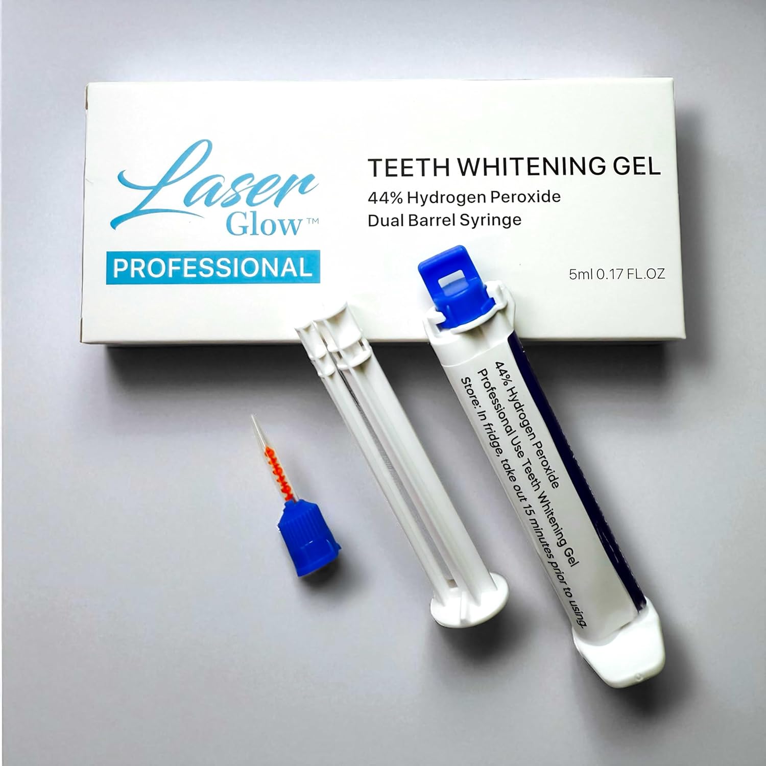 LaserGlow Professional Teeth Whitening Gel 44% Hydrogen Peroxide – Dual Barrel Syringe for Fast and Effective Whitening Results