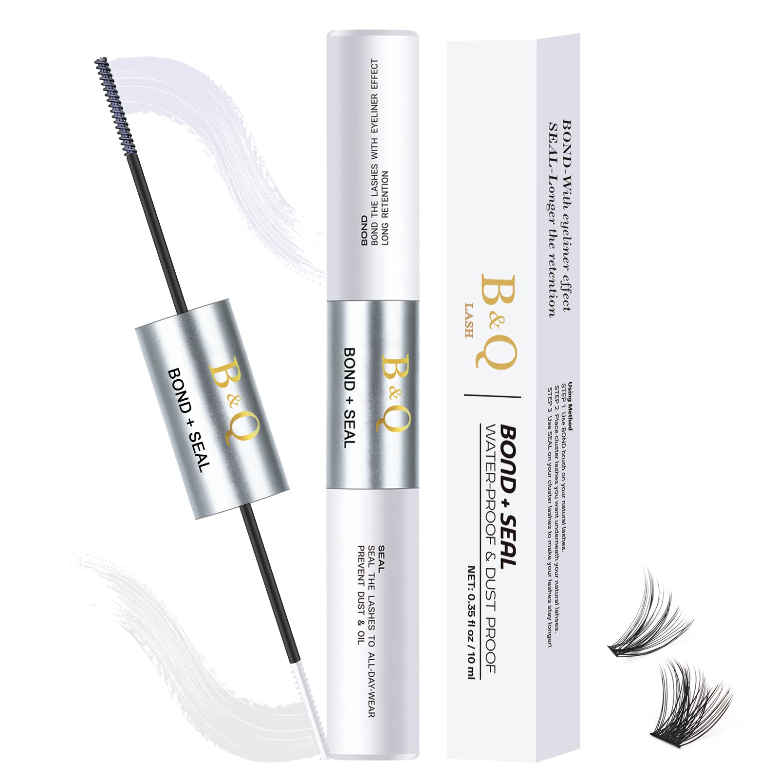 Lash Bond and Seal 10ML B&Q Eyelash Bond and Seal for Lash Clusters Long Lasting Bond and Seal Lash Glue Hold 48-72 Hours Waterproof Cluster Lash Glue Mascara Wand Bond and Seal (Clear 10ML) White Bond and Seal 10 ML