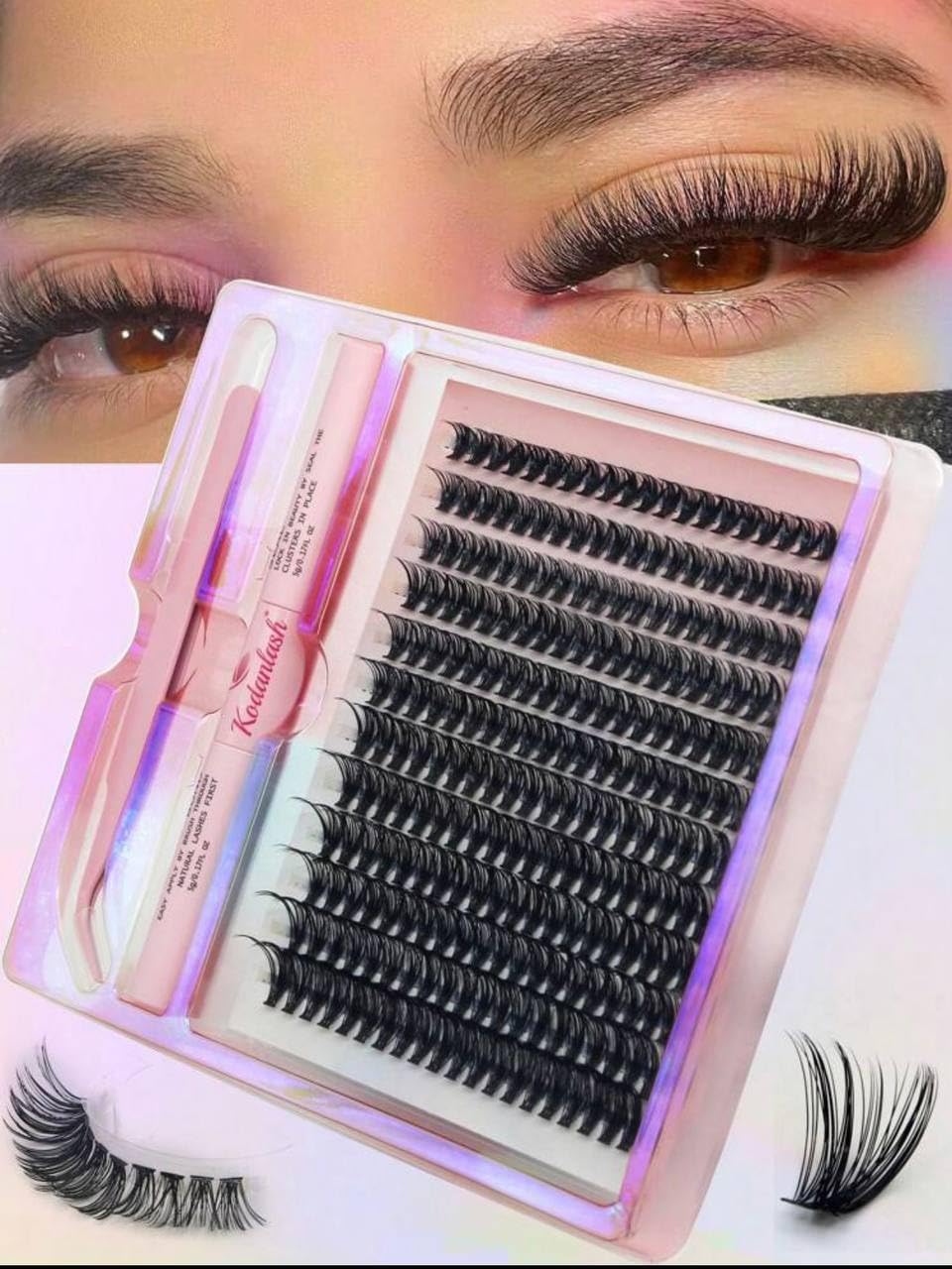 Lash Extention Kit DIY Individual Lashes, Extention Kit 144pcs, D Curl Volume Lash Cluster, Wispy Set LAshes, Cat eye look, Comes with Long lasting Lash Bond and Lash Seal and Lash Tweezers for eyelash Extension. Eyelash extension look real and compliment all eye shape