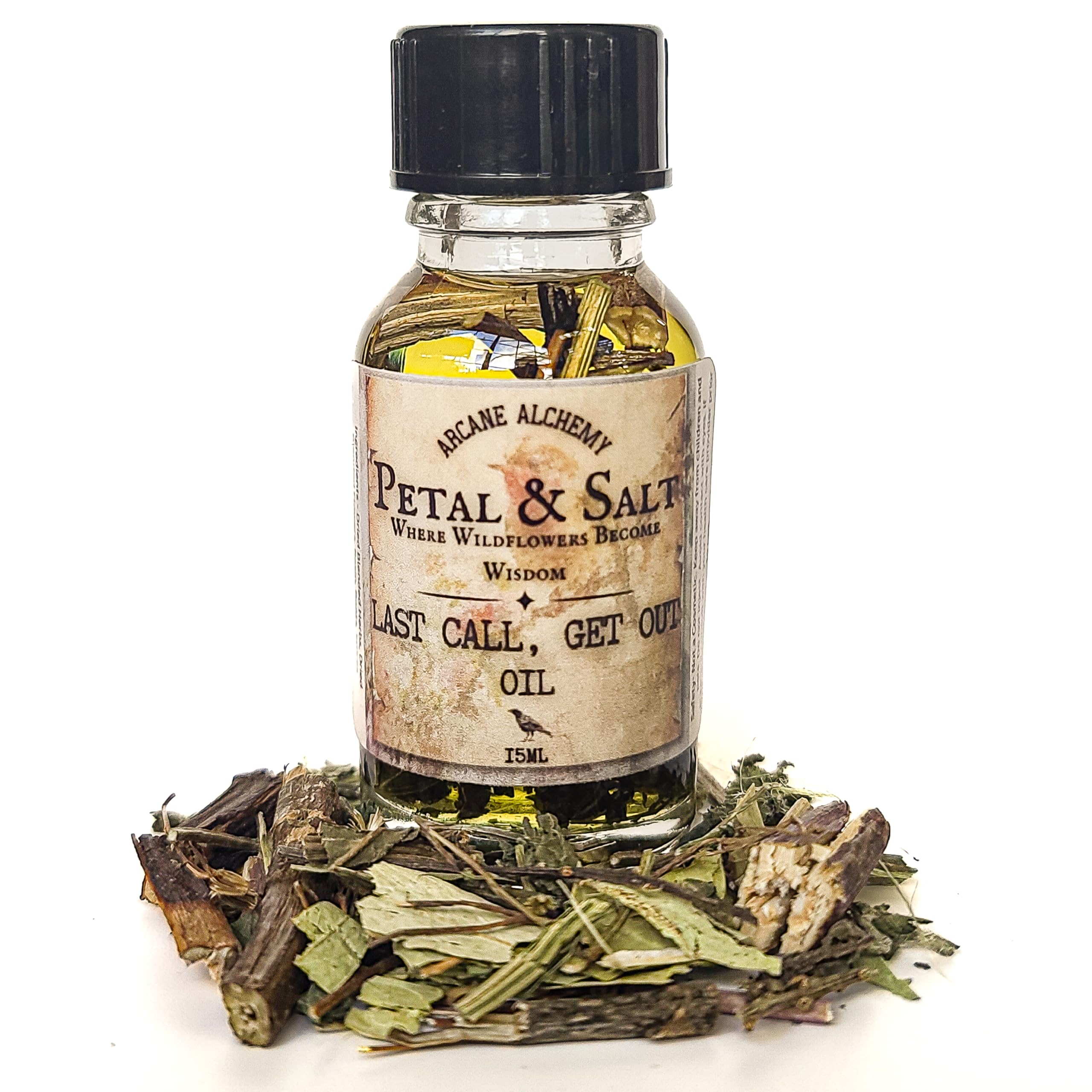 Say goodbye to unwanted energy with Petal Salt's Last Call, Get Out Oil, a powerful ritual blend crafted to remove toxic people, draining spirits, intrusive energies, and emotional residue from your life or home. This traditional banishing oil works as both a spiritual eviction and energetic protection, helping you reclaim your peace, power, and personal space. Use to cut cords, block drama, end harassment, close toxic cycles, and clear the atmosphere of negativity. Infused with botanicals historically used for banishing, reversal, and psychic defense, this hand-blended oil supports boundary magic, home cleansing rituals, cord-cutting work, spiritual eviction spells, and strong protection rites. Whether you feel watched, drained, overwhelmed, or burdened by someone's energy, this oil signals it's their final exit — last call, time to go. Use on doors, candles, petitions, thresholds, shoes, or ritual tools to send unhealthy influences away with force and finality. Reclaim your spiritual space and enforce your boundaries with confidence, clarity, and closure.Use for unwanted guests, stubborn spirits, draining relationships, negative environments, or repeated conflict. Helps close toxic cycles and restore peace. Anoint candles, petitions, thresholds, shoes, vehicles, door frames, windowsills, tools, or personal items to remove unwanted influences and reinforce strong boundaries. Made in small batches with traditional banishing plants and protective roots used for reversal, uncrossing, separation work, and spiritual security. Creates a barrier against psychic attack, manipulation, jealousy, drama, gossip, and intrusive attention. Helps keep your aura, home, and spirit protected. Sends away toxic people, draining spirits, negative energy, and emotional residue. Ideal for boundary magic, spiritual eviction, cord cutting, and ending harmful connections.