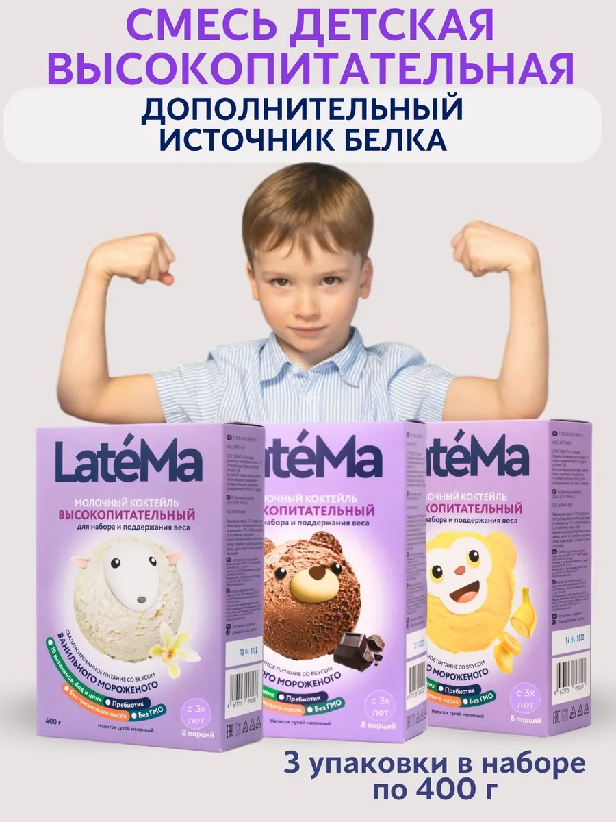 Сухая молочная смесь Латема для приготовления коктейля - это вкусный и питательный напиток для детей от 3-х лет с недостаточностью питания, который поможет соблюсти правильное питание и накормить вашего малоежку. Молочный коктейль для диетического питания детей, поддержания и набора оптимального веса содержит пребиотик, витамины и минеральные вещества. Сбалансированный набор компонентов специально разработан для правильного развития вашего ребенка и поддержания иммунитета в период активного роста и при повышенных физических и умственных нагрузках. Молочная детская смесь Latema предназначена для увеличения доли белка и углеводов в рационе, профилактики и коррекции недостаточного питания. Детские молочные смеси Латема высокопитательные по вкусу напоминают мороженое. В линейке представлены три самых любимых детских вкуса: шоколад, ваниль и банан. Ваш маленький малоешка безусловно оценит вкус. Без ГМО, Без Глютена, Без крахмала, Без пальмового масла, Без консервантов, Без искусственных красителей и ароматизаторов. Чтобы приготовить вкусную и полезную детскую смесь вам потребуется 50 г (5 мерных ложек) сухого молочного напитка и 150-200 мл теплой воды. Постепенно вливайте воду в молочную смесь, тщательно перемешивая до однородного состояния и вкусный перекус в виде молочного коктейля готов! Подходит для ежедневного применения. Рекомендуется для детского питания: 1 порция коктейля в день для детей от 3 до 7 лет, 2 порции коктейля Latema для детей с 7 лет и старше.