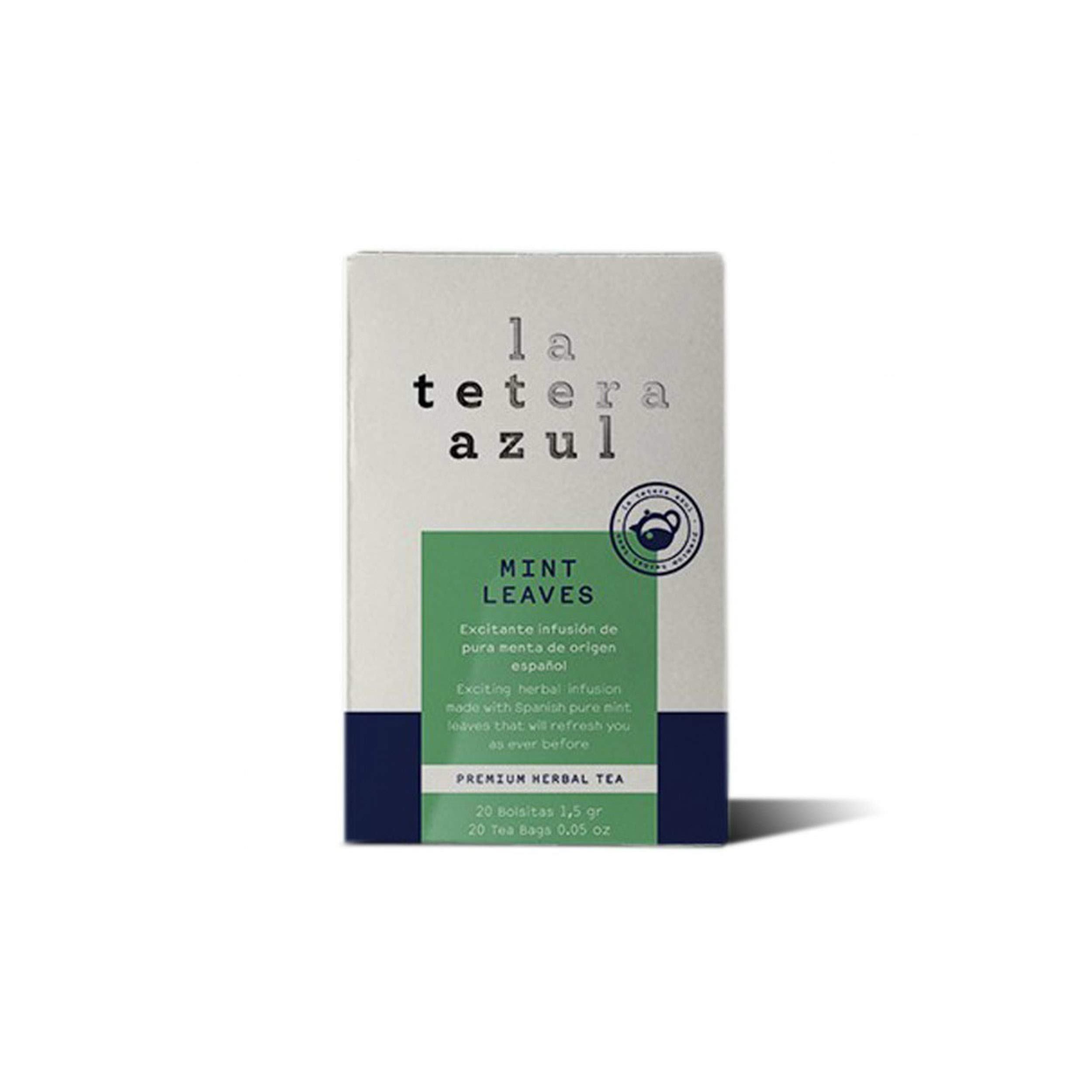 Mint Leaf Infusion - La Tetera Azul A refreshing infusion of Mentha x piperita, one of the most aromatic in the world. Perfect after meals. An exciting infusion of pure mint of Spanish origin. Ingredients: 100 mint leaves. Features: Gluten-free, suitable for celiacs Sugar-free, suitable for diabetics Lactose-free, suitable for those with lactose intolerance Non-GMO Suitable for vegans and vegetarians How to prepare: Place one tea bag in a mug and pour boiling water over it. Cover and let it steep for 5 minutes to allow the flowers to release their full aroma. Serve it in these mugs that cuddle with both hands and warm the atmosphere anytime. INGREDIENTS Mint INSTRUCTIONS Place one tea bag in a mug and add boiling water. Cover and let it steep for 5 minutes to allow the flowers to release their full aroma. Serve in these mugs that are perfect for cuddling and can warm the atmosphere anytime. See more