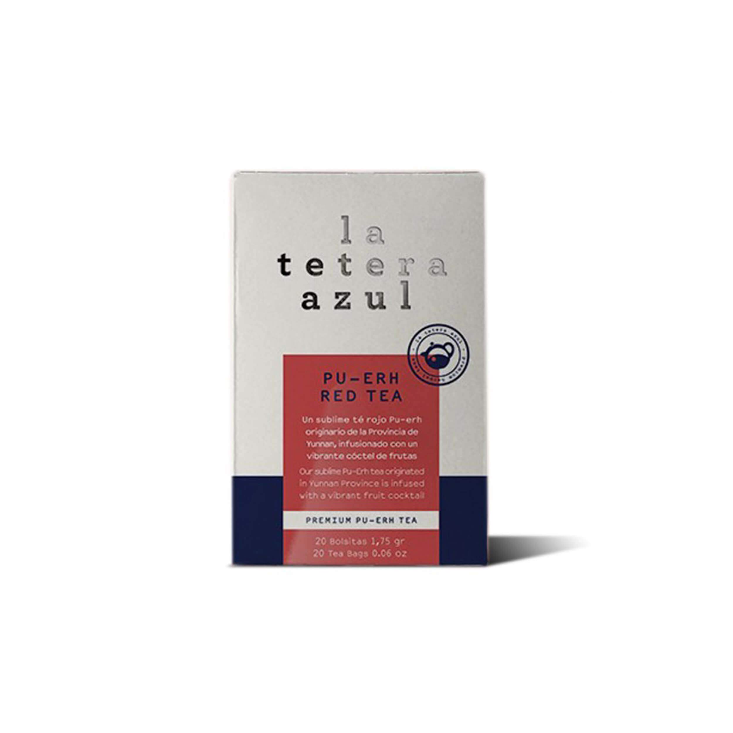 LA TETERA AZUL Rode thee Pu Erh doordrenkt met fruit. Afslankinfusie. Thee verfraait. 20 zakjes van 1,75 gram.