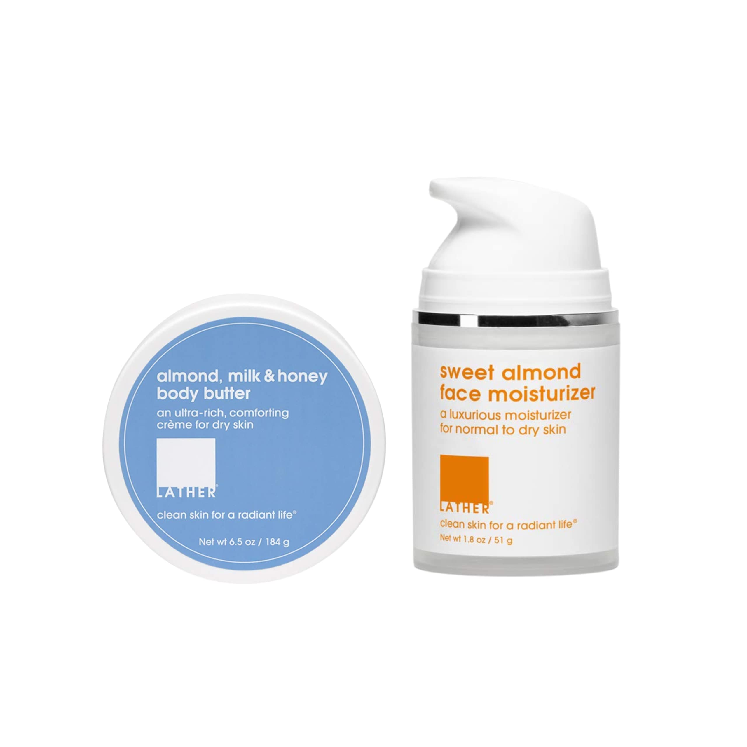 LATHER Almond Milk & Honey Body Butter + Sweet Almond Face Moisturizer | Gentle & Natural Face Moisturizer + Body Butter