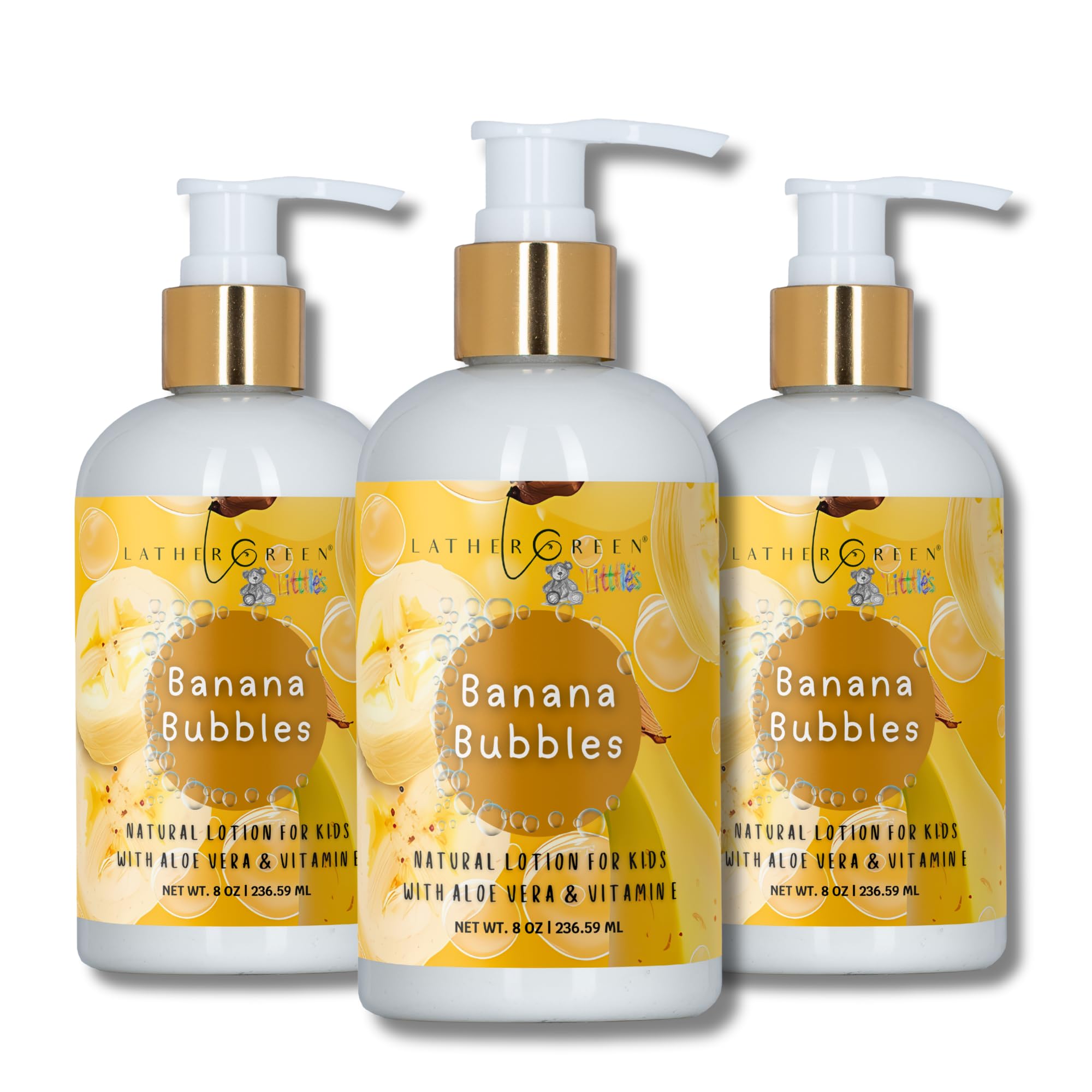Lather Green Kids Body Lotion Plant Based Gentle Moisturizer with Shea Butter Safe for Sensitive Skin Banana Bubbles 3 Pack (8 oz Each)