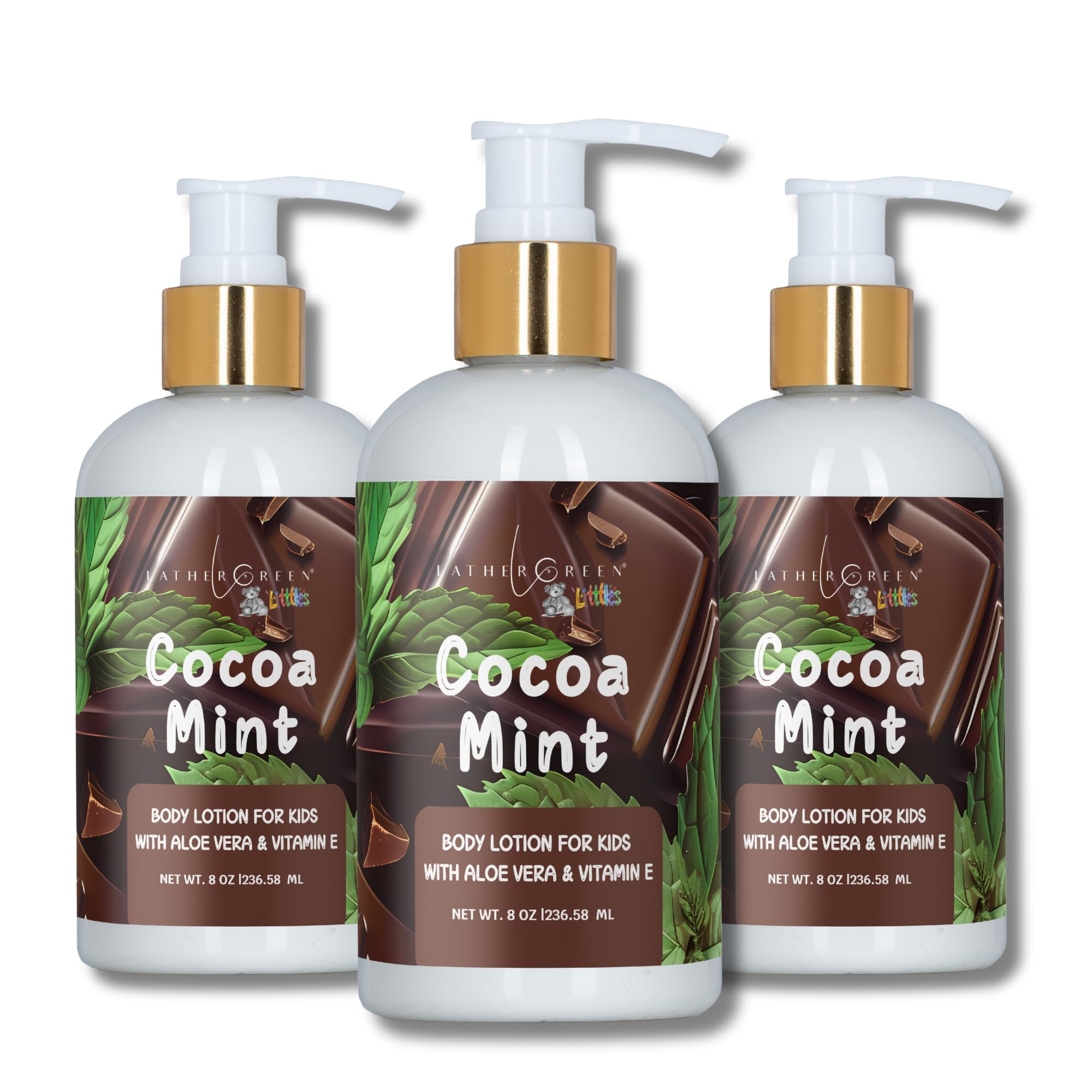 Lather Green Kids Body Lotion Plant Based Gentle Moisturizer with Shea Butter Safe for Sensitive Skin Cocoa Mint 3 Pack (8 oz Each)