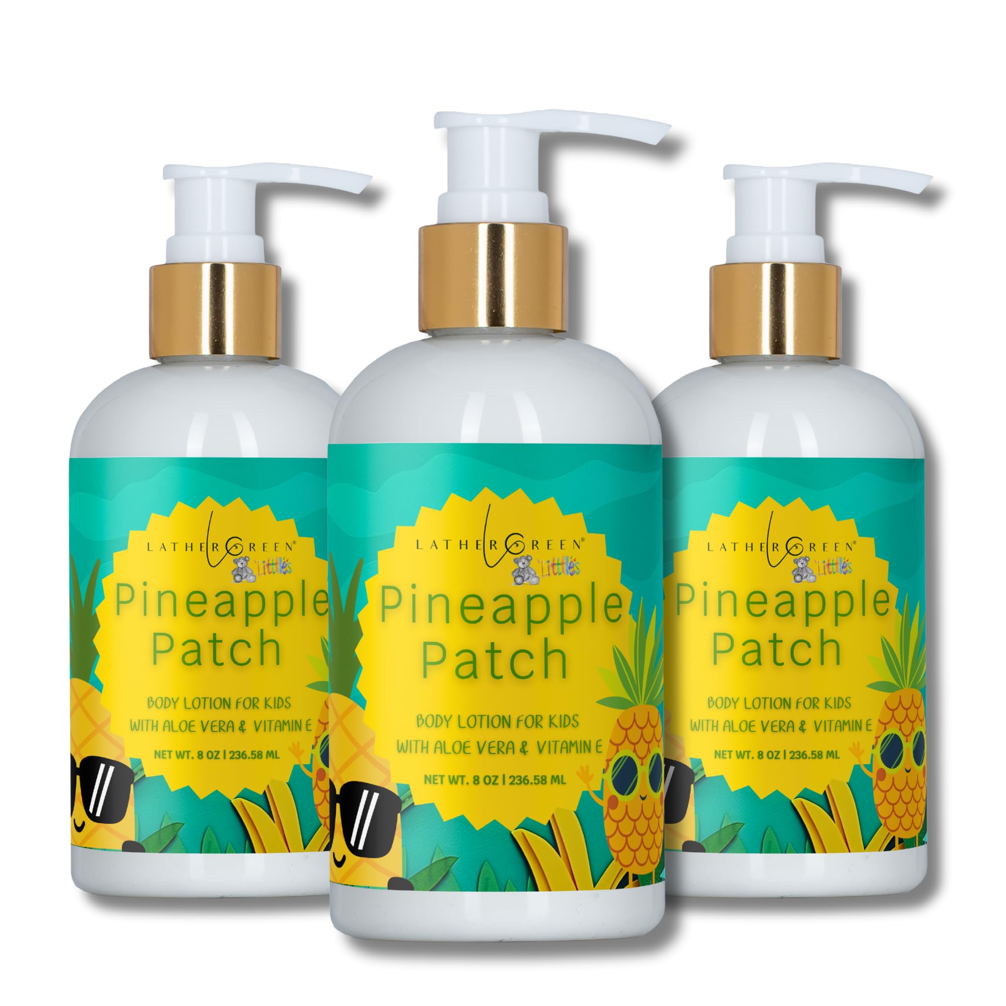 Lather Green Kids Body Lotion Plant Based Gentle Moisturizer with Shea Butter Safe for Sensitive Skin Pineapple Patch 3 Pack (8 oz Each)