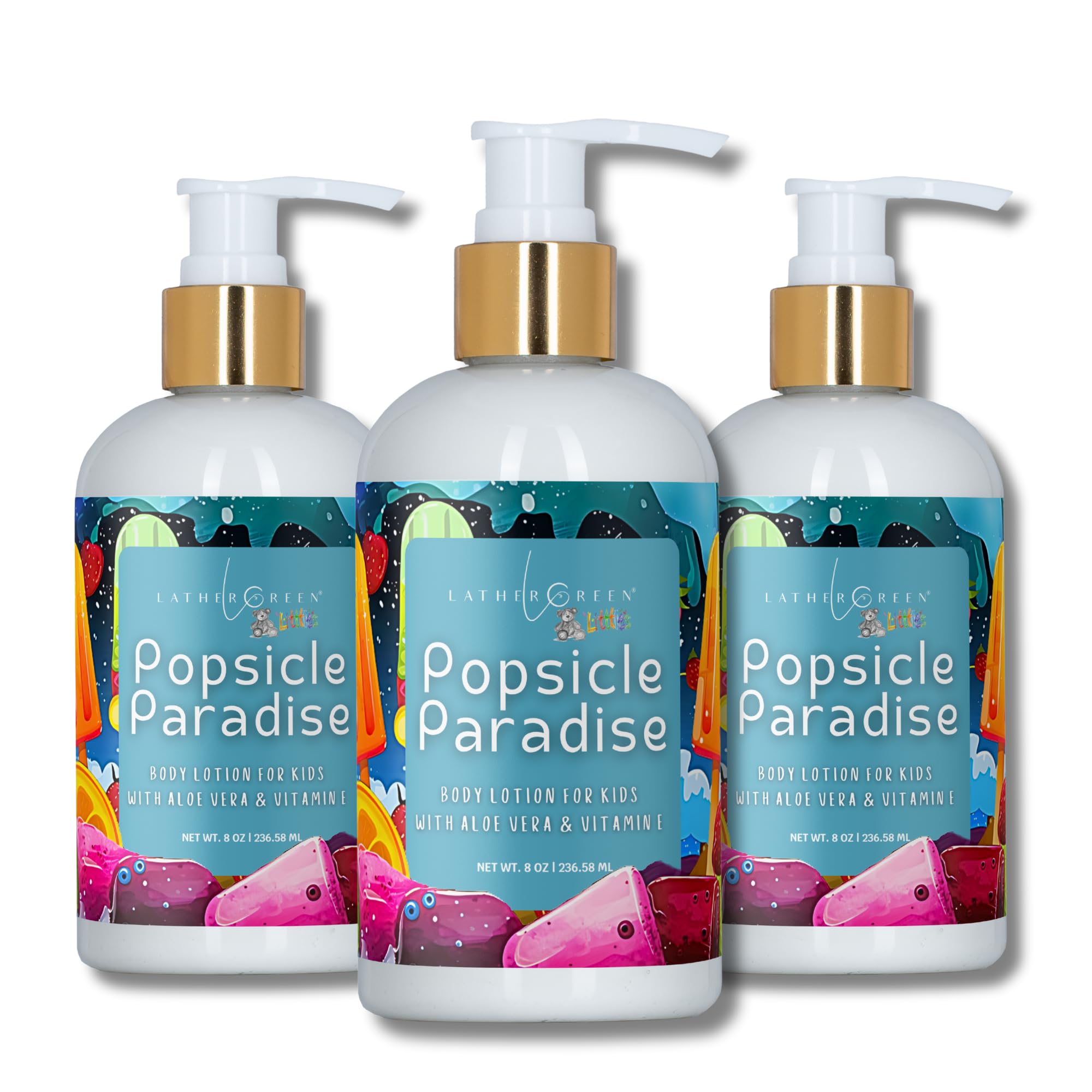 Lather Green Kids Body Lotion Plant Based Gentle Moisturizer with Shea Butter Safe for Sensitive Skin Popsicle Paradise 3 Pack (8 oz Each)
