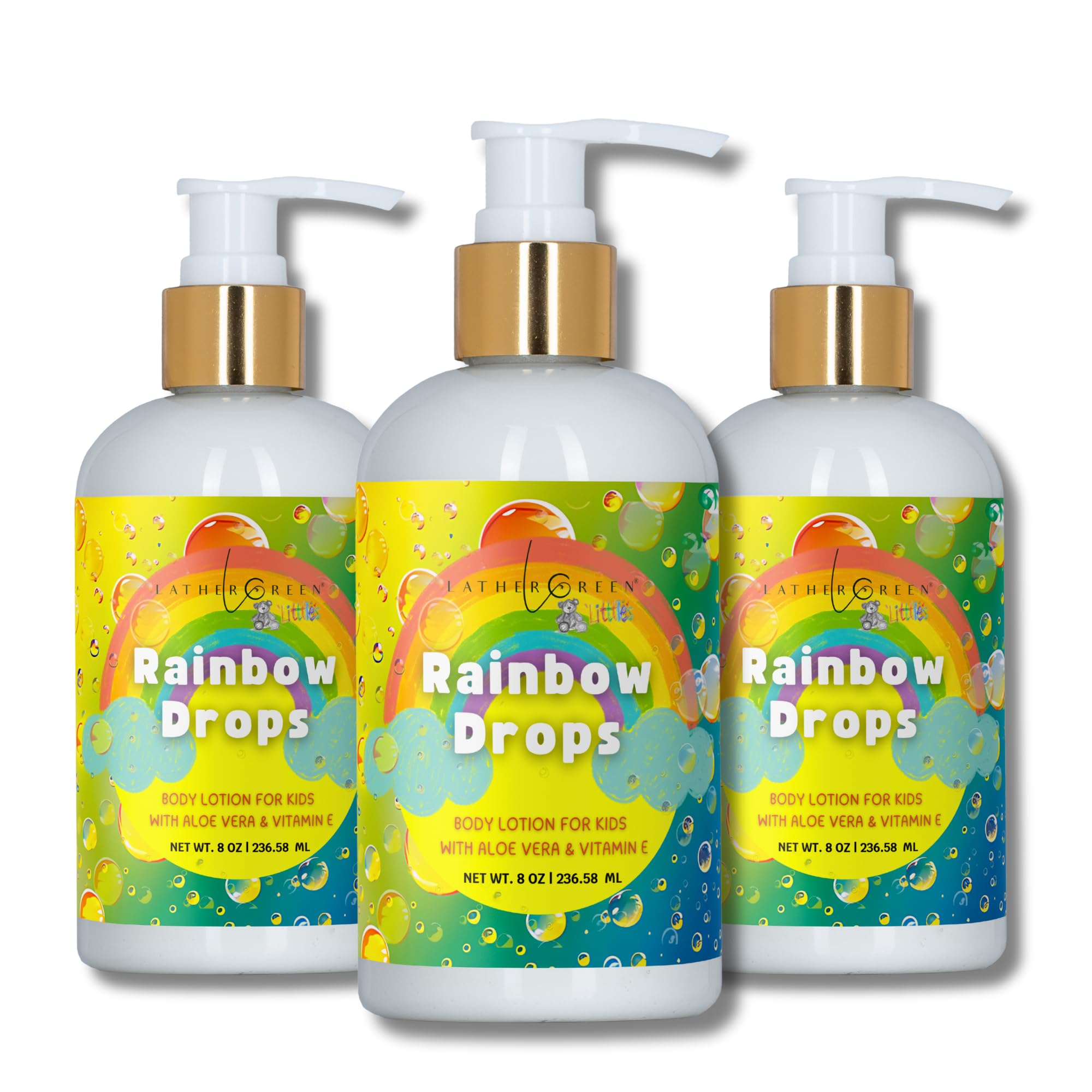 Family-Sized Value Pack – Three 8 oz bottles provide long-lasting hydration all year. Fast Absorbing Non-Greasy – Lightweight texture leaves skin soft, smooth, and refreshed. Rainbow Drops Scent – A bright, fruity fragrance that adds a splash of fun and color to every moisturizing session. Safe for Sensitive Skin – Free from parabens, dyes, and harsh chemicals. Gentle Plant-Based Formula – Nourishes kids' skin with shea butter and natural oils.