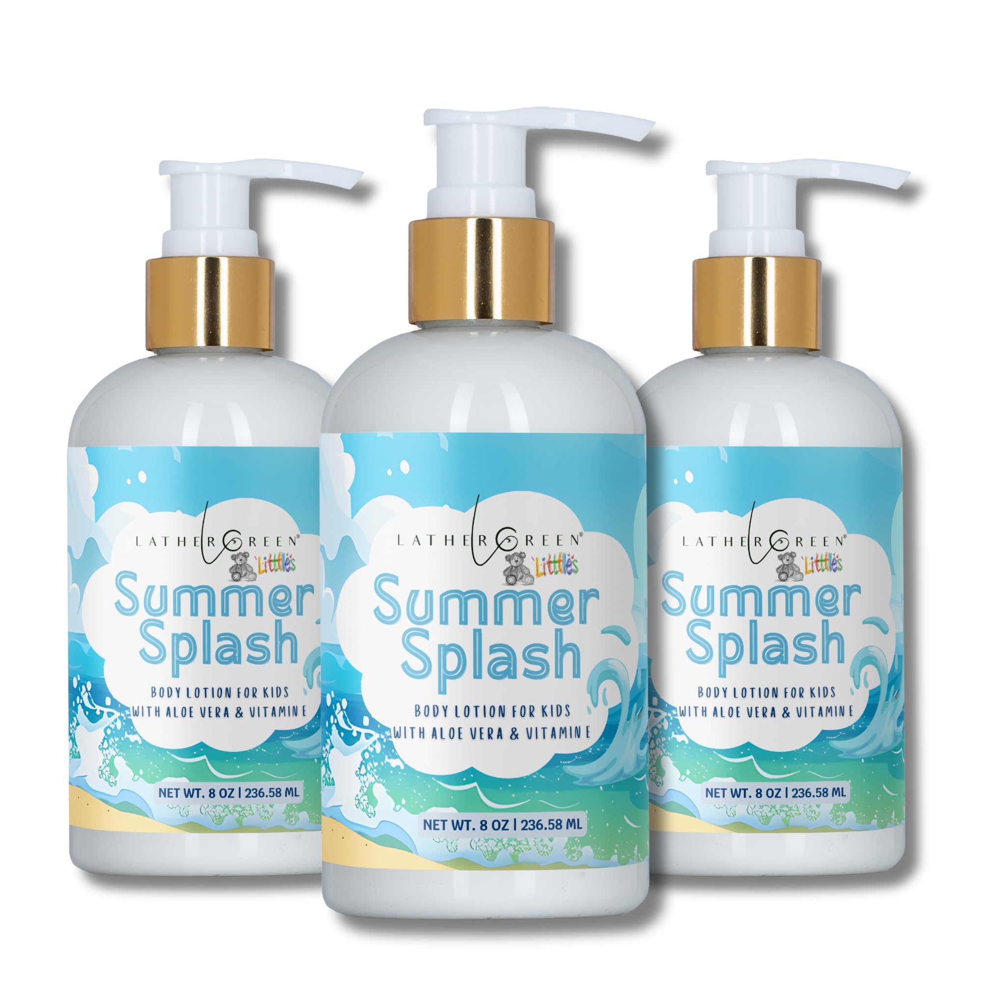 Lather Green Kids Body Lotion Plant Based Gentle Moisturizer with Shea Butter Safe for Sensitive Skin Summer Splash 3 Pack (8 oz Each)