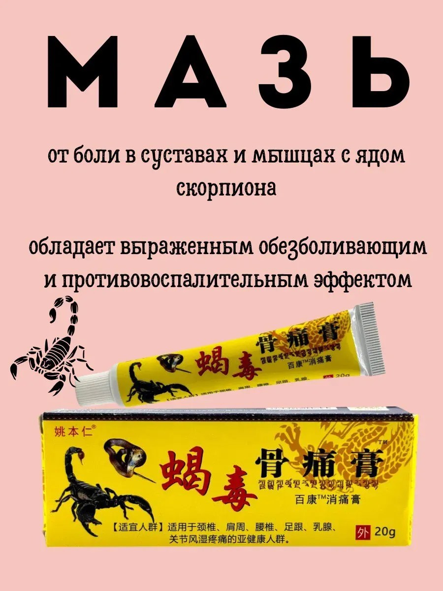 This pain-relieving ointment with scorpion venom is an effective remedy for joint and muscle pain, designed to improve mobility, reduce inflammation, and promote recovery after physical activity.