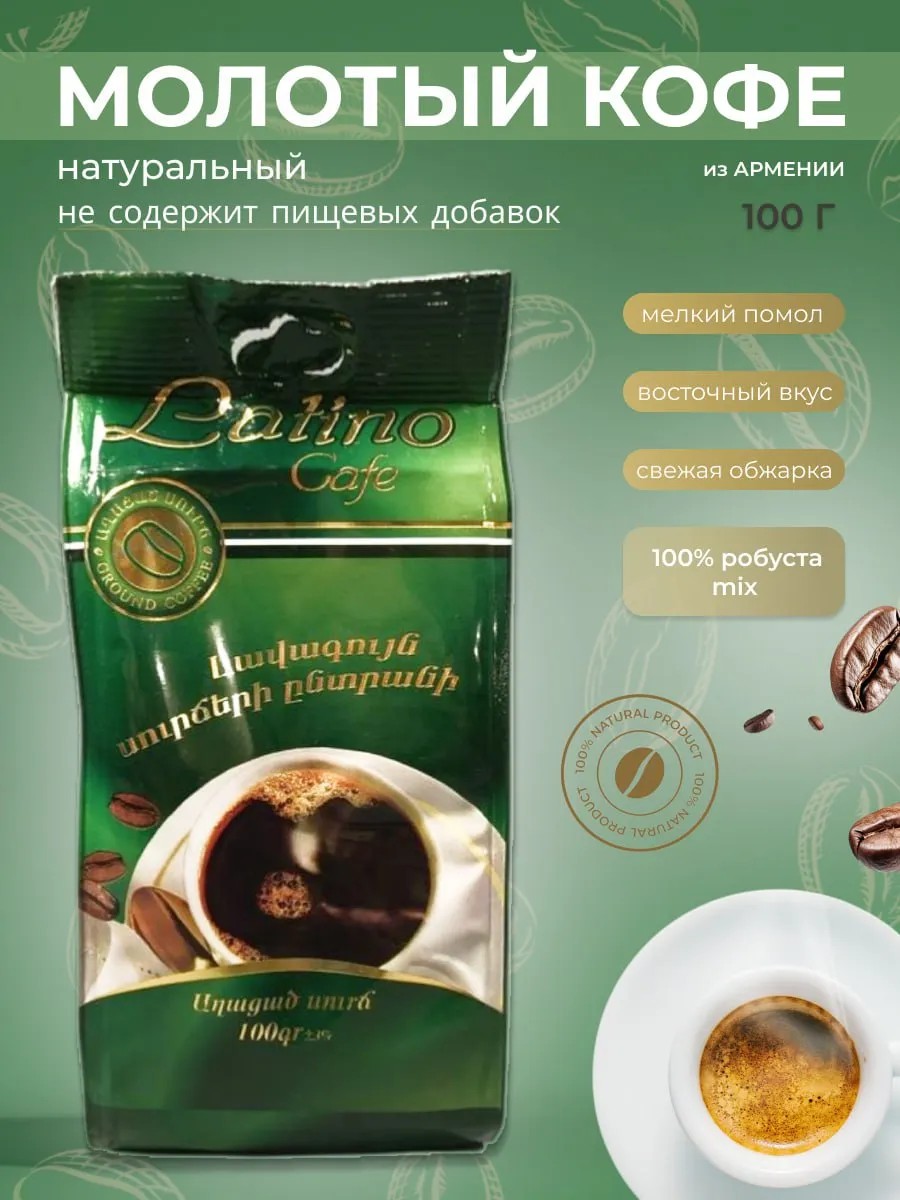 Кофе Latino (Латино) молотый, робуста mix, компактная упаковка, для турки, походов и кофемашин