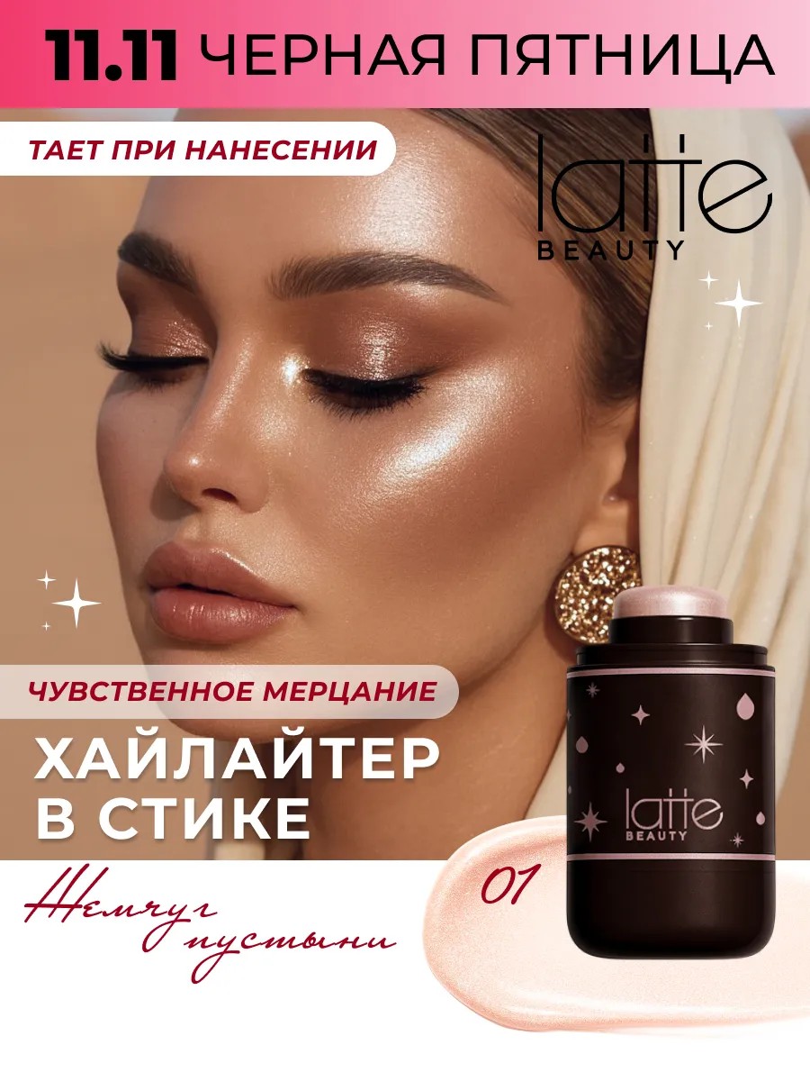 Особенность хайлайтера-тинта от Latte Beauty — его мультифункциональность. Он идеально подходит не только для лица, но и как кремовый шиммер на веки, блеск для губ или сияние на тело. Приятная бархатистая текстура не липнет, не скатывается и остаётся на коже в течение всего дня, не теряя своей выразительности.