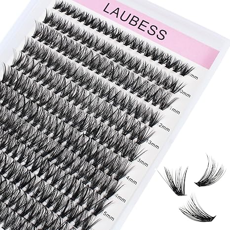 LAUBESS - Cluster Lashes 240pcs 40D DIY Eyelash Extension D Curl Long Individual Lashes Mixed Tray Faux Mink Lash Clusters Extensions 0.07 0.10 Black - 40D-0.07D-9-16mm