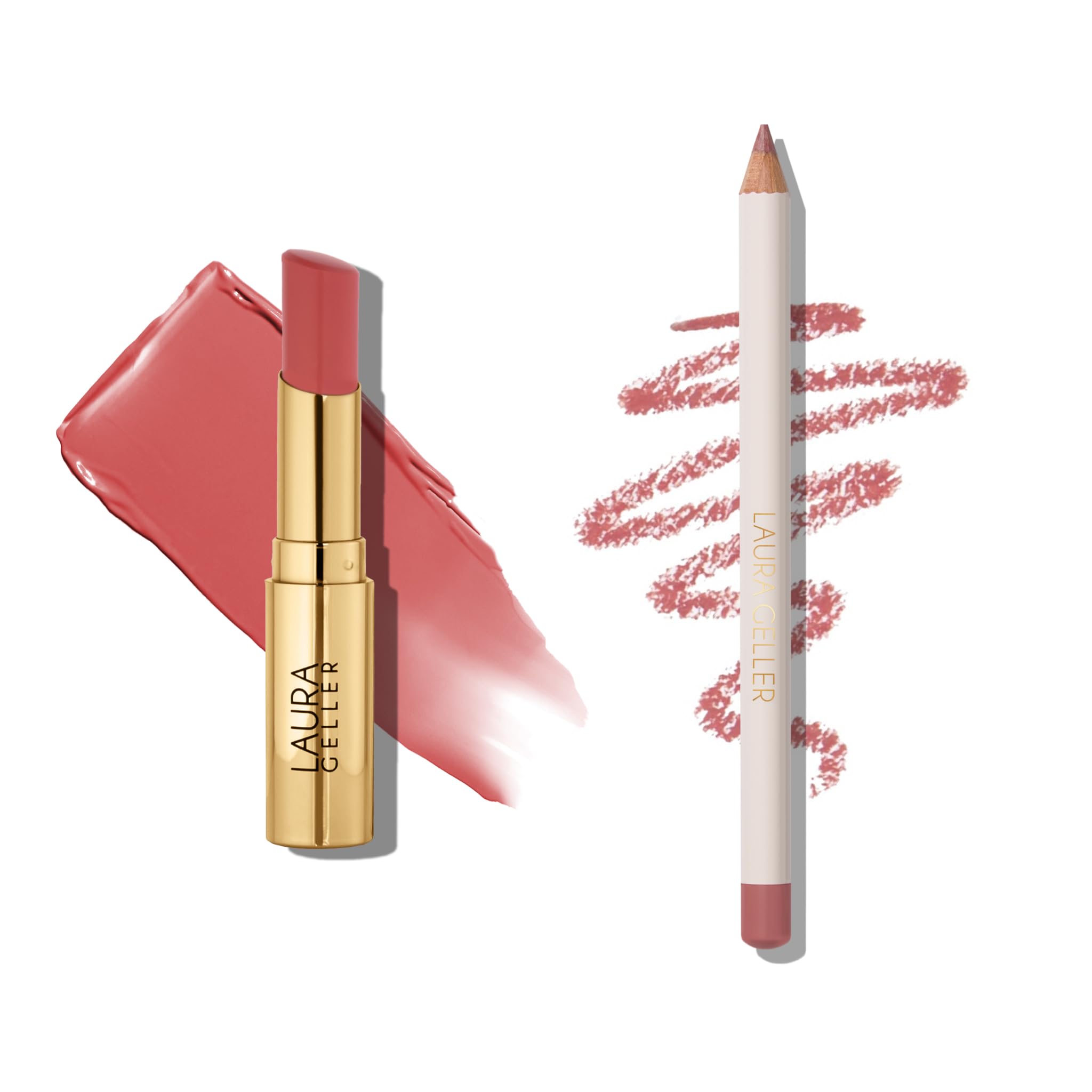 LAURA GELLER Lip Color & Liner Lip Kit | Jelly Balm Hydrating Tinted Lip Balm Just Peachy + Marble Lips Multidimensional Liner Poetic Pink