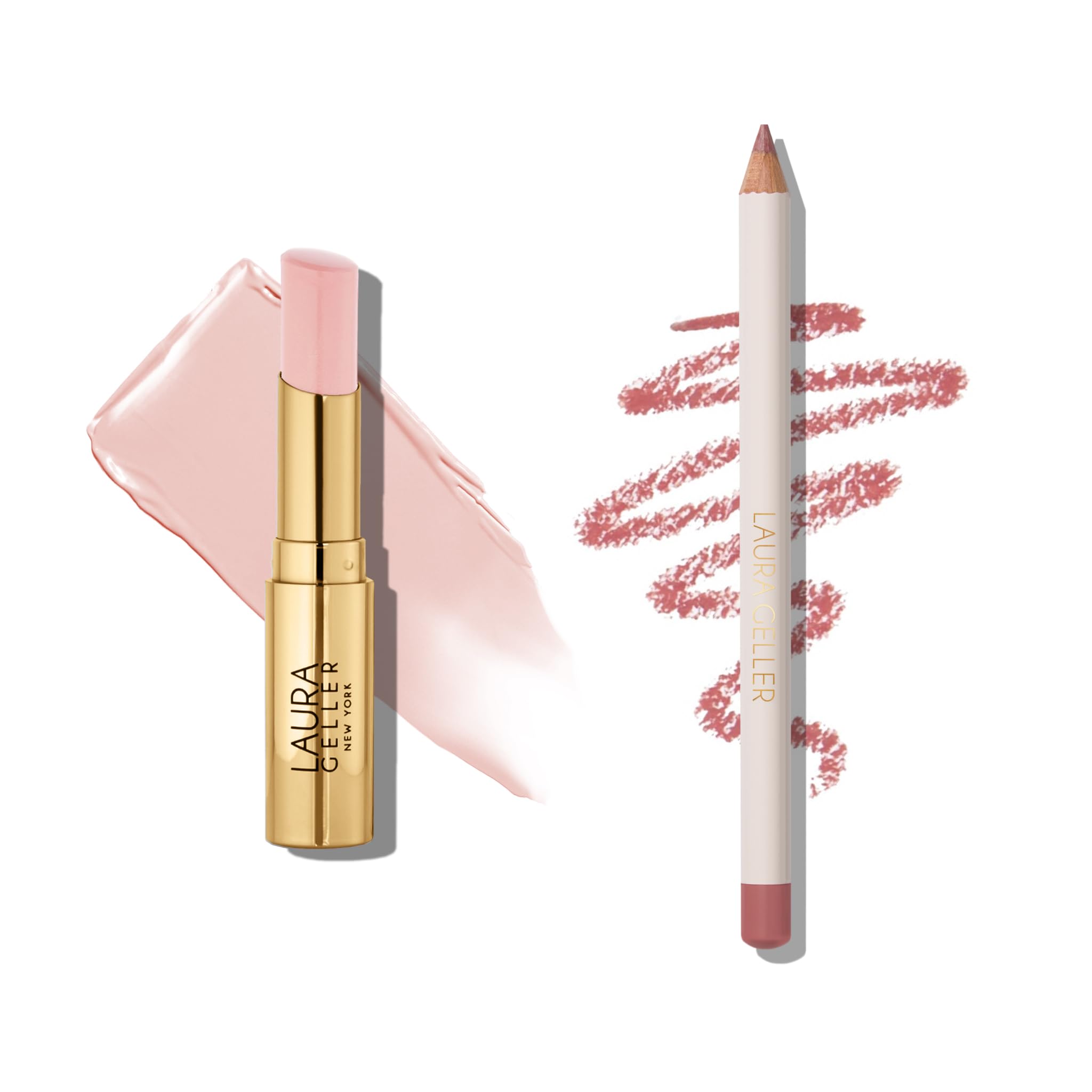 LAURA GELLER Lip Color & Liner Lip Kit | Jelly Balm Hydrating Tinted Lip Balm Sheerly Amazing + Marble Lips Multidimensional Liner Poetic Pink