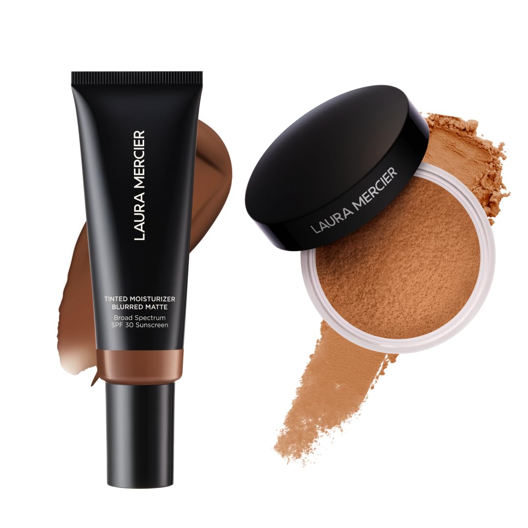Laura Mercier Tinted Moisturizer Blurred Matte with SPF 30 24HR+ Shine Control Shade 6N Umber and Translucent Loose Setting Powder 24HR Shine Control Infused with Vitamins C + E Medium Deep