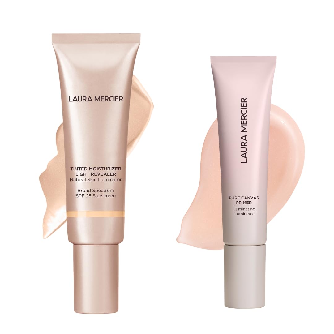 Laura Mercier Tinted Moisturizer Light Revealer with SPF 25 Luminous Finish Shade 1C0 Cameo and Pure Canvas Primer Illuminating Improves and Extends Wear of Makeup Radiant Finish Bundle