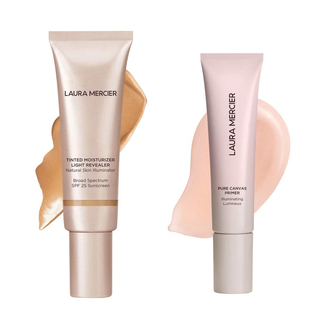Laura Mercier Tinted Moisturizer Light Revealer with SPF 25 Luminous Finish Shade 3N1 Sand and Pure Canvas Primer Illuminating Improves and Extends Wear of Makeup Radiant Finish Bundle