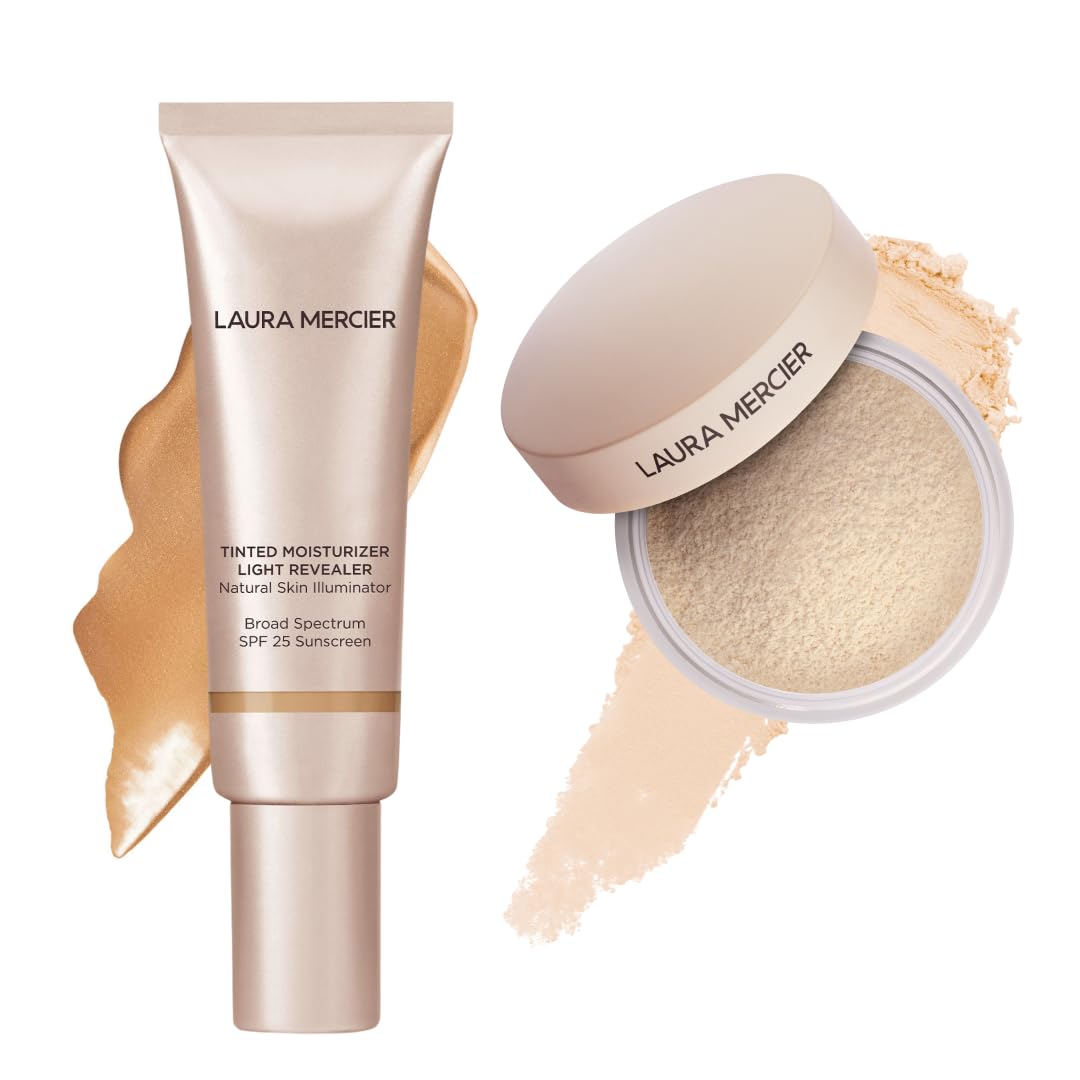 Laura Mercier Tinted Moisturizer Light Revealer with SPF 25 Luminous Finish Shade 3N1 Sand and Translucent Loose Talc-Free Setting Powder Ultra-Blur: Hyaluronic Acid Infused Shade Translucent Bund