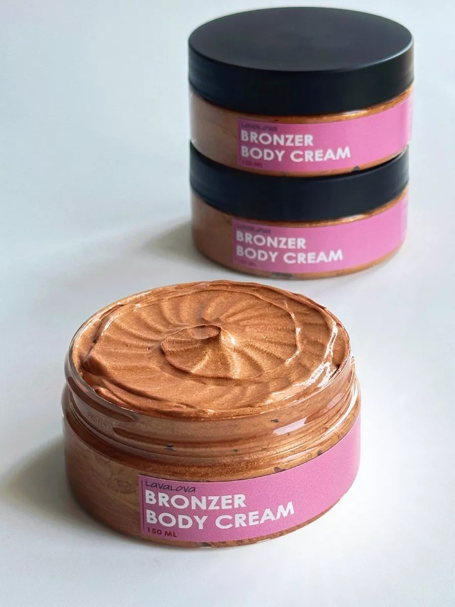 LavaLova Shimmer Body Cream with a tanning effect can be used as a body bronzer. It absorbs quickly, doesn't stain clothing, and imparts a pleasant coconut scent. The cream contains nourishing oils and moisturizing body ingredients. It leaves skin soft, smooth, and hydrated, imparting an attractive golden shimmer. This body bronzer is ideal for more than just summer. Liquid tights for legs smooth out minor imperfections like bruises, scars, and spider veins. The bronzer has a delicate texture and spreads easily and evenly. This shiny body cream with shimmer leaves no streaks, spots, or marks. The tight lid prevents the cream from spreading, and the dispenser is easy to use. It has a tanning effect for the body. Virtual tights. Apply the glitter cream and glow this spring and summer.