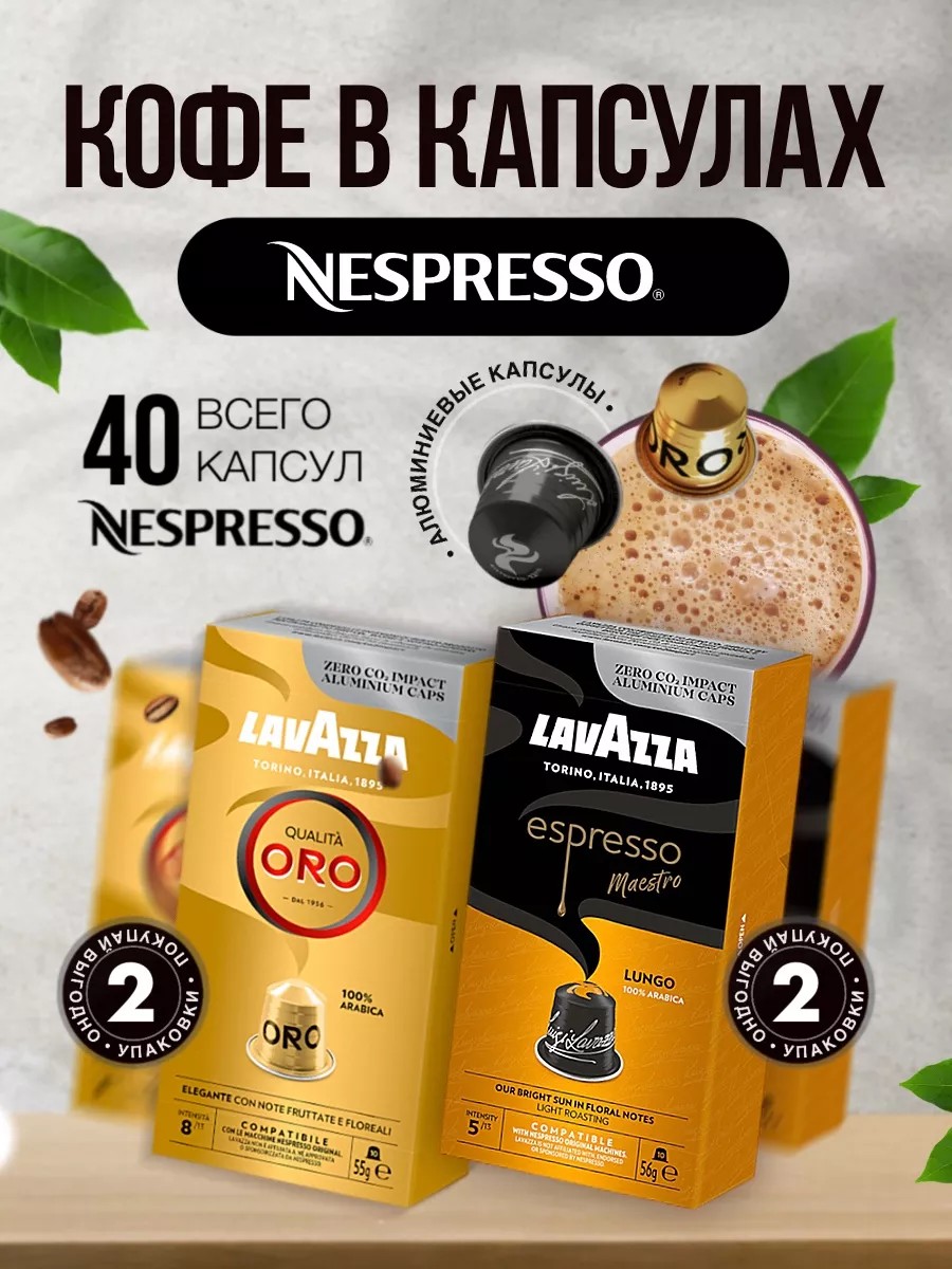 | Комплектация | Капсулы Lavazza Qualita Oro (10 капс.) - 2 упак.; Капсулы Lavazza Lungo (10 капс.) - 2 упак. |
