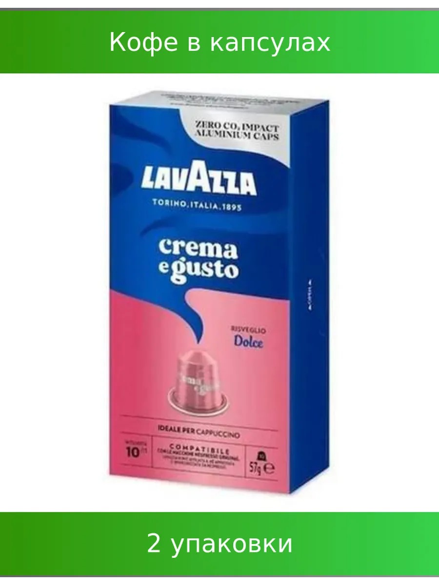Кофе в капсулах LAVAZZA "Crema&Gusto Dolce" для кофемашин Nespresso, 10 порций, ш/к 59818, 2 упаковки.