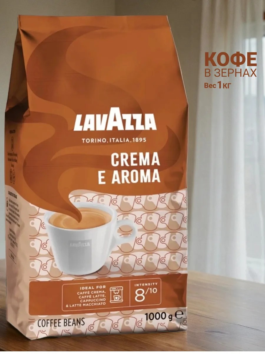 Кофе зерновой LAVAZZA Crema E Aroma 1 кг идеально сбалансированный бленд премиум качества отборной 100% арабики и робусты, который дарит напитку богатый вкус и плотную кремовую текстуру.
